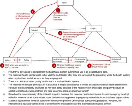 翻译:本文的目的是与信息系统的使用环境进行互动,以此解释细微的人类技术互动。本文特别建议将寻求保健的概念化作为一种活动,为技术利用提供更丰富的解释。这是根据活动理论进行的一项解释性研究,目的是将寻求保健的概念化为最起码的用途。AT的核心方面框架用于分析肯尼亚环境中的一个经验性健康案例,从而说明AT如何应用于研究技术应用。本文通过解释在复杂的人类技术互动背景下可能出现的各种利用行为来说明技术的使用;从复杂的采用过程到确定在干预中继续信任与信息信任和潜在的技术应对战略的机制,该文件是使AT能够应用来研究技术使用的新尝试。因此,它提供了更广泛的用途,同时为将寻求保健概念化作为一种活动而可能实现的设计和实施提供了见解。这种洞见可能有助于设计以病人为中心的系统。
