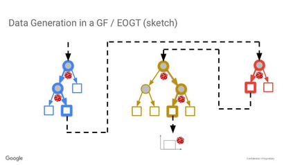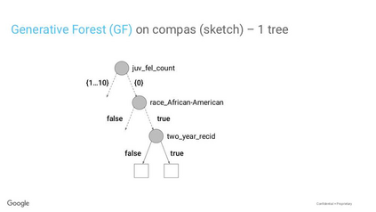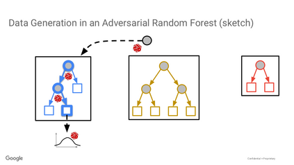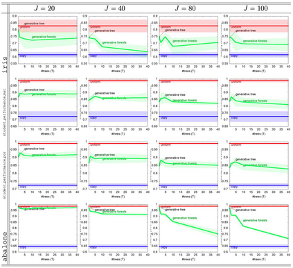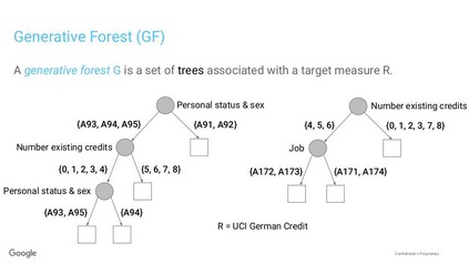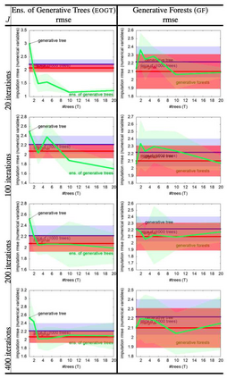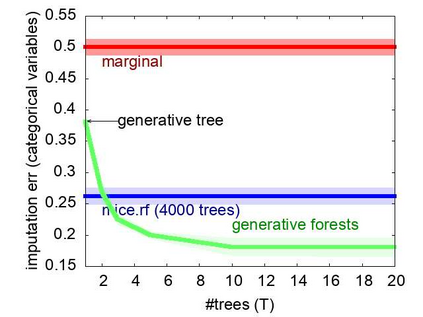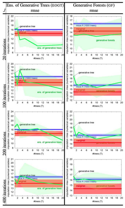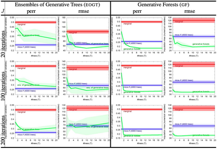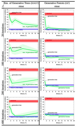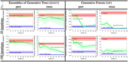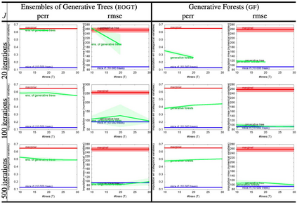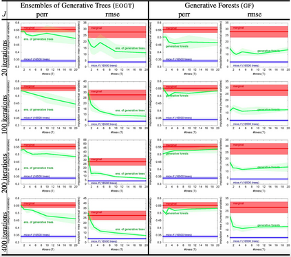 Tabular data represents one of the most prevalent form of data. When it comes to data generation, many approaches would learn a density for the data generation process, but would not necessarily end up with a sampler, even less so being exact with respect to the underlying density. A second issue is on models: while complex modeling based on neural nets thrives in image or text generation (etc.), less is known for powerful generative models on tabular data. A third problem is the visible chasm on tabular data between training algorithms for supervised learning with remarkable properties (e.g. boosting), and a comparative lack of guarantees when it comes to data generation. In this paper, we tackle the three problems, introducing new tree-based generative models convenient for density modeling and tabular data generation that improve on modeling capabilities of recent proposals, and a training algorithm which simplifies the training setting of previous approaches and displays boosting-compliant convergence. This algorithm has the convenient property to rely on a supervised training scheme that can be implemented by a few tweaks to the most popular induction scheme for decision tree induction with two classes. Experiments are provided on missing data imputation and comparing generated data to real data, displaying the quality of the results obtained by our approach, in particular against state of the art.