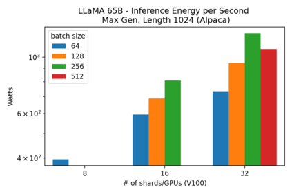 Large language models (LLMs) have exploded in popularity due to their new generative capabilities that go far beyond prior state-of-the-art. These technologies are increasingly being leveraged in various domains such as law, finance, and medicine. However, these models carry significant computational challenges, especially the compute and energy costs required for inference. Inference energy costs already receive less attention than the energy costs of training LLMs -- despite how often these large models are called on to conduct inference in reality (e.g., ChatGPT). As these state-of-the-art LLMs see increasing usage and deployment in various domains, a better understanding of their resource utilization is crucial for cost-savings, scaling performance, efficient hardware usage, and optimal inference strategies. In this paper, we describe experiments conducted to study the computational and energy utilization of inference with LLMs. We benchmark and conduct a preliminary analysis of the inference performance and inference energy costs of different sizes of LLaMA -- a recent state-of-the-art LLM -- developed by Meta AI on two generations of popular GPUs (NVIDIA V100 \& A100) and two datasets (Alpaca and GSM8K) to reflect the diverse set of tasks/benchmarks for LLMs in research and practice. We present the results of multi-node, multi-GPU inference using model sharding across up to 32 GPUs. To our knowledge, our work is the one of the first to study LLM inference performance from the perspective of computational and energy resources at this scale.
