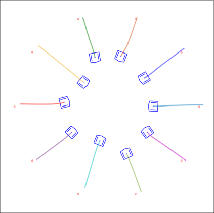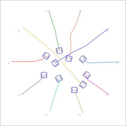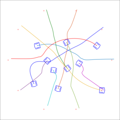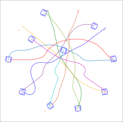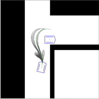 翻译:我们提出了一种在复杂动态环境中使用模型预测平衡点控制的安全机器人导航算法的优化形式。我们在每个时间步上通过优化轨迹成本函数来优雅地导航机器人在动态环境中,我们提出了一种新颖的轨迹成本公式,显著降低保守和死锁行为,并生成平滑的轨迹。特别地,我们提出了一种新的碰撞概率函数,有效捕捉给定配置和速度方向的碰撞风险和避免碰撞的时间。此外,我们提出了一个基于预期到达时间和避免进入死锁状态的末态成本,可以帮助避免导致死锁的轨迹。我们在多个模拟和真实场景下评估了我们的成本公式,包括带动态障碍物的狭窄走廊,并观察到与先前方法相比,显著提高了导航行为并减少了死锁。