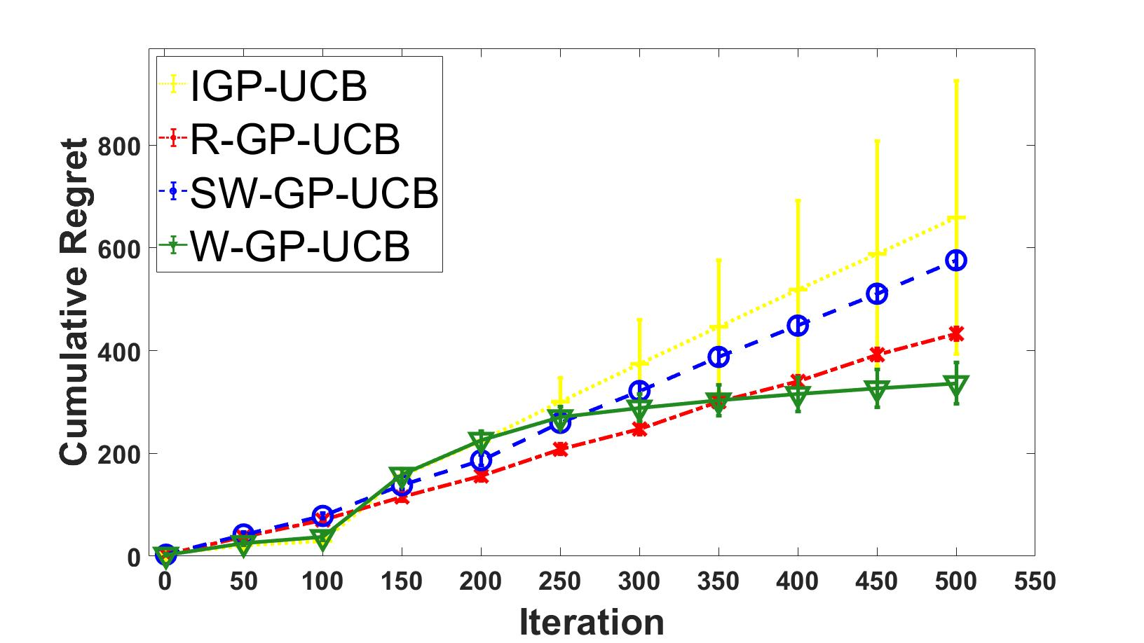 翻译:在本文中, 我们考虑高山进程( GP) 土匪优化在非静止环境中的问题。 为了捕捉外部变化, 黑盒功能允许在复制的Hilbert 空间( RKHS) 复制核心空间( RKHS) 中进行时间变化。 为此, 我们开发了WG- UCB, 这是一种基于加权高山进程回归的新型UCB型算法。 关键的挑战是如何应对无限的地貌特征地图。 为此, 我们利用内核接近技术来证明一个子线性遗憾捆绑, 这是第一个( 链式) 线性次线性负遗憾保证, 这是对加权的、 时间变化的土匪和一般非线性奖励的次线性遗憾保证 。 这导致非静止线性线性土匪和标准的GPP- UCB 算法普遍化。 此外, 在加权的高空进程回归中实现了新的集中性不平等性。 我们还为加权的最大信息收益提供了通用的上限和重度上限。 这些结果对于应用具有独立的兴趣, 例如新闻排名和调整定价等应用方式, 其权重度可以用来衡量现有算算算算算数据收益。