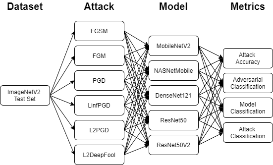 Production machine learning systems are consistently under attack by adversarial actors. Various deep learning models must be capable of accurately detecting fake or adversarial input while maintaining speed. In this work, we propose one piece of the production protection system: detecting an incoming adversarial attack and its characteristics. Detecting types of adversarial attacks has two primary effects: the underlying model can be trained in a structured manner to be robust from those attacks and the attacks can be potentially filtered out in real-time before causing any downstream damage. The adversarial image classification space is explored for models commonly used in transfer learning.