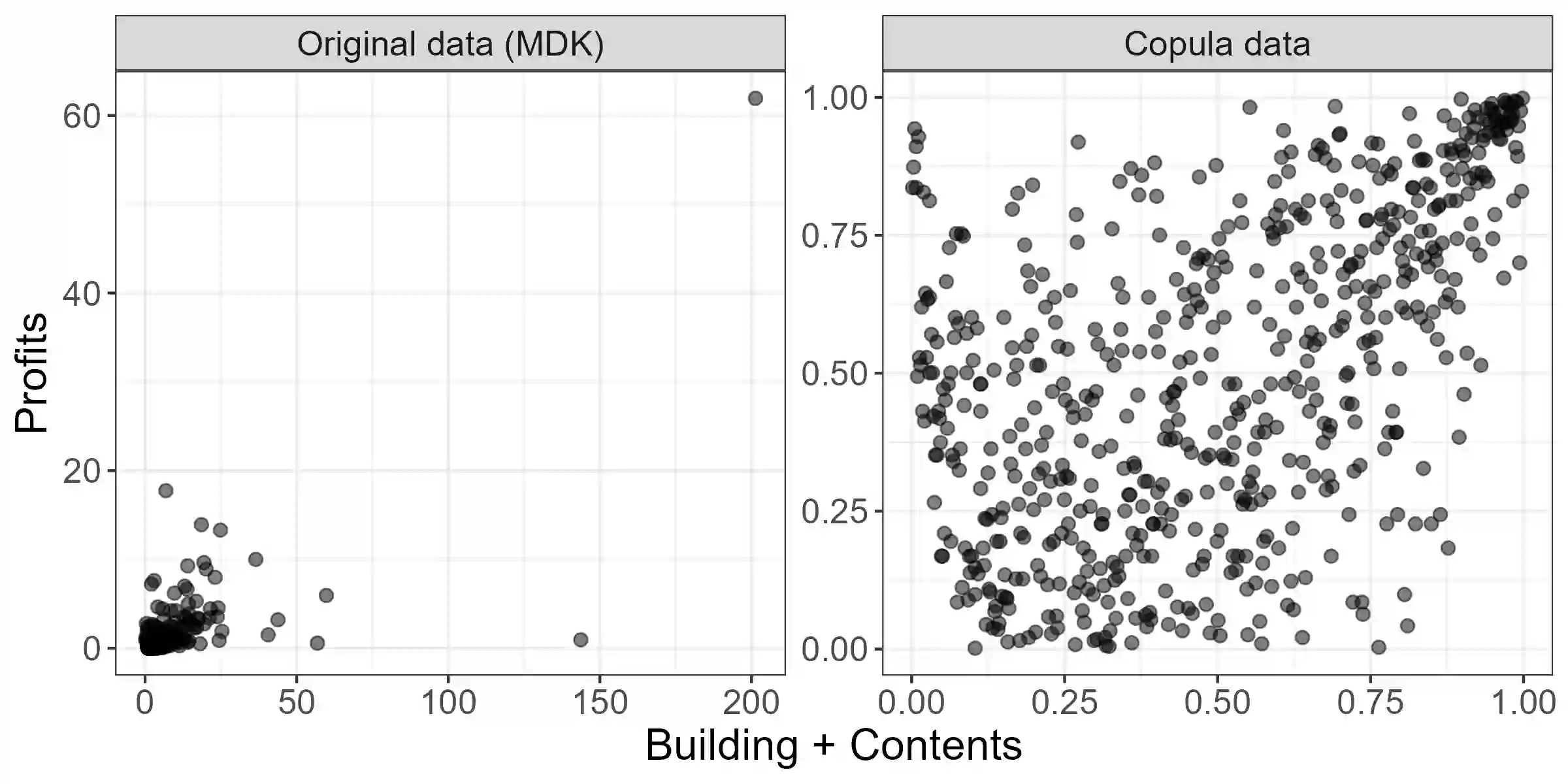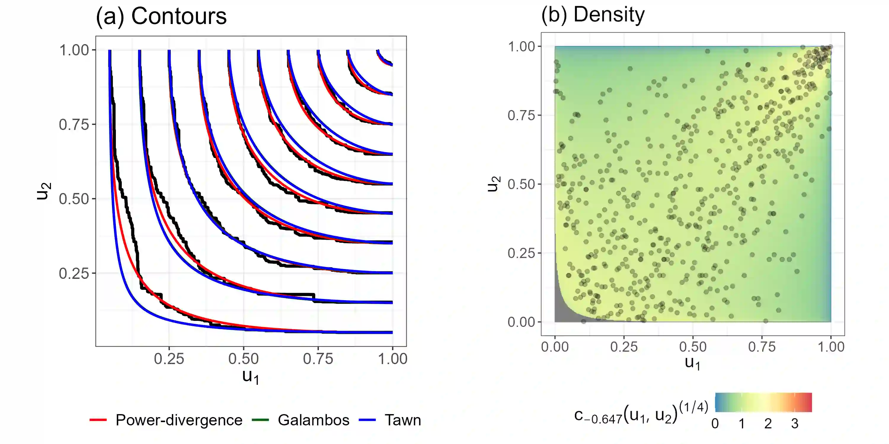 This paper demonstrates that, under a particular convention, the convex functions that characterise the phi divergences also generate Archimedean copulas in at least two dimensions. As a special case, we develop the family of Archimedean copulas associated with the important family of power divergences, which we call the power-divergence copulas. The properties of the family are extensively studied, including the subfamilies that are absolutely continuous or have a singular component, the ordering of the family, limiting cases (i.e., the Frechet-Hoeffding lower bound and Frechet-Hoeffding upper bound), the Kendall's tau and tail-dependence coefficients, and cases that extend to three or more dimensions. In an illustrative application, the power-divergence copulas are used to model a Danish fire insurance dataset. It is shown that the power-divergence copulas provide an adequate fit to the bivariate distribution of two kinds of fire-related losses claimed by businesses, while several benchmarks (a suite of well known Archimedean, extreme-value, and elliptical copulas) do not.