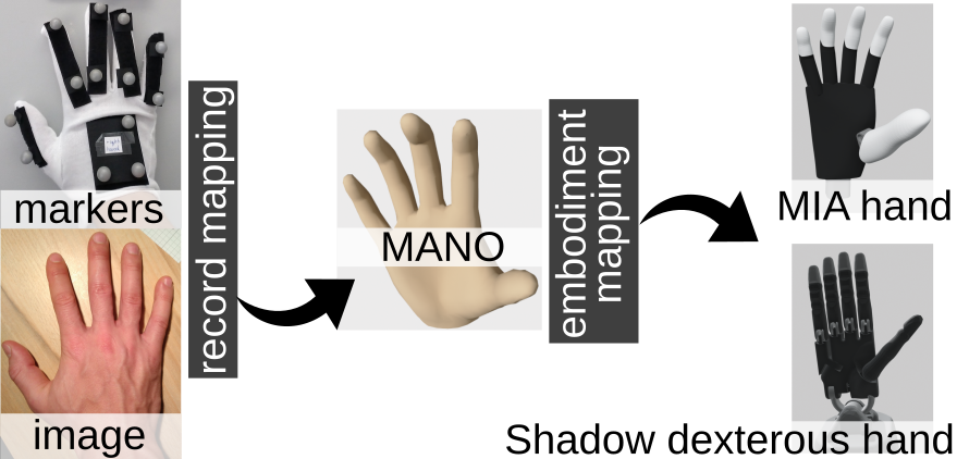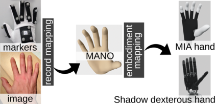 翻译:用机器人手操纵物体是一项复杂的任务。 不仅需要协调手手指, 还需要协调机器人尾部效应的构成。 使用人类运动演示是一种直觉和数据高效的方式来指导机器人的行为。 我们提出了一个模块框架, 包含一个自动化映射, 将记录到的人类手动转移到机器人系统。 在这项工作中, 我们使用运动捕捉来记录人类运动。 我们评估了我们对于八项具有挑战性的任务的方法, 其中机器人手需要捕捉和操纵变形的或小的和脆弱的物体。 我们在模拟和真实的机器人上测试一组轨迹, 并且总体成功率是一致的。