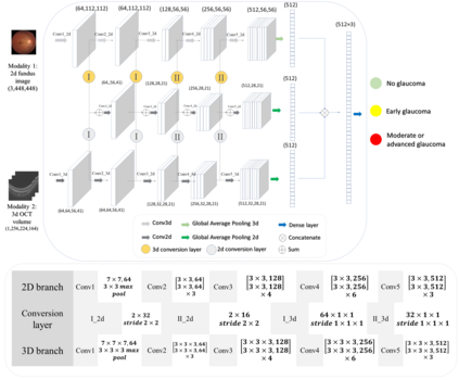 翻译:医疗任务中经常有多模式信息,通过综合多种来源的信息,临床医生能够作出更准确的判断。近年来,临床临床分析实践中采用了多种成像技术:2D Fundus照片、3D光学一致性断层摄影(OCT)和3D OCT血管造影等。我们的文件调查了三种基于深度学习解决视网膜分析任务的多模式信息融合战略:早期聚合、中间聚变和等级融合。常用的早期和中间聚变是简单的,但没有充分利用各种模式之间的互补信息。我们开发了一种分级融合方法,侧重于将网络多个层面的特征结合起来,并探索各种模式之间的相互关系。这些方法应用于青光眼和糖尿病再生病理分类,使用公共GAMMA数据集(Fundus照片和OCT)和PlexELLite 9000(Carl Zeis Meditec Inc.)的私人数据集。我们的分级融合方法在两种情况下都采用最佳的方法,为更好的临床诊断铺垫路。