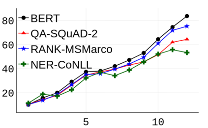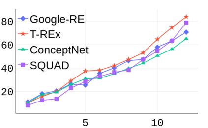 翻译:检验复杂的语言模型最近揭示了对在所学的表述中发现的语言和语义模式的一些洞察力。在本条中,我们专门调查生物伦理学研究小组,以了解和测量它在参数记忆中获取的关系知识。虽然对语言理解的测试通常适用于生物伦理学研究小组的所有层次以及微调模型,但对于事实知识并没有这样做。我们利用现有的知识基础完成任务(LAMA)来探测经过预先训练的和经过精细调的BERT模型(级别、回答问题、NER)的每一层。我们的研究结果表明,知识并不仅仅包含在生物伦理学小组的最后一层中。中间层为发现的全部知识贡献了相当大的数量(17-60% ) 。检验中间层还揭示了不同类型知识以不同的速度出现的情况。当生物伦理学小组进行微调时,关系知识被遗忘了。我们发现,由于微调目标和培训数据数据的影响,排位模型在最后一层中会忘记最少的知识,并且保留更多的知识,而与隐蔽的语言模型和问答相比。然而,隐藏的语言模型对于所发现的总知识的贡献是相当大的数量。但是,在获得的最初的实验能力中,我们从获得的深度研究中掌握了新的记忆中,我们掌握了最新的学习中的主要数据。
