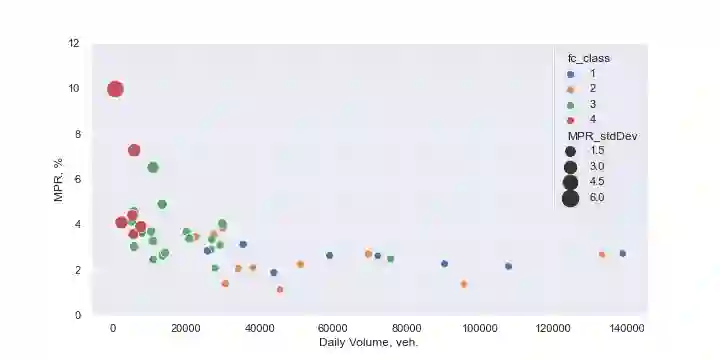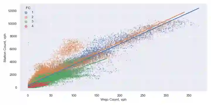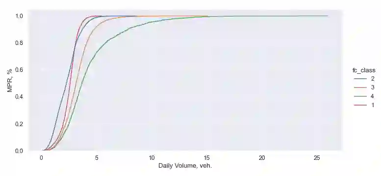 翻译:相连接的车辆数据(CVD)是最有希望的新兴流动数据之一,它大大提高了有效监测运输系统性能的能力。对商用车辆轨迹数据集进行了市场渗透和覆盖范围评价,以确定它是否代表新泽西州全州公路网车辆数量的足够样本。数据集(官方名称为Wejo车辆移动数据)与在相应两个月期间46个在动重量(WIM)交通计数站获得的车辆数量进行了比较。观察到的州际公路、非国家间快车、主要动脉和小动脉流动数据市场渗透率为2.55%(标准值为0.76%)、2.31%(标准偏差1.07%)、3.25%(标准偏差1.48%)和4.39%(标准偏差2.65%),此外,数据集的时间分辨率(即,在特定公路段、非国家间快车道、主要动脉和小动动脉移动数据之间的连续行车渗透率间隔时间,观察到的市场渗透率为2.55%(标准偏差),尽管在WIM型车辆的移动范围较宽的市场中,总的交通流量是稳定的。