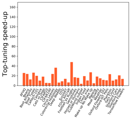 翻译:深层学习结构的令人印象深刻的绩效与模型复杂性的大幅增长相关联。 数百万参数需要调整, 并相应地进行培训和推算时间。 但大规模微调是必要的吗? 在本文中,我们考虑一种简单的转移学习方法,利用预先训练的革命性特征作为快速内核方法的投入。 我们称这一方法为顶调,因为只有内核分类器才受过培训。 通过实施2500多个培训流程,我们发现这种顶调方法提供了类似的准确性w.r.t.微调,而培训时间在一到两个数量级之间,规模较小。这些结果表明,顶调为小型/中等数据集的微调提供了有用的替代方法,特别是在培训效率至关重要的情况下。