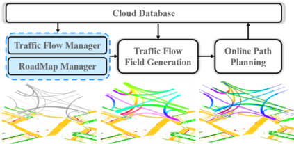 There is extensive literature on perceiving road structures by fusing various sensor inputs such as lidar point clouds and camera images using deep neural nets. Leveraging the latest advance of neural architects (such as transformers) and bird-eye-view (BEV) representation, the road cognition accuracy keeps improving. However, how to cognize the ``road'' for automated vehicles where there is no well-defined ``roads'' remains an open problem. For example, how to find paths inside intersections without HD maps is hard since there is neither an explicit definition for ``roads'' nor explicit features such as lane markings. The idea of this paper comes from a proverb: it becomes a way when people walk on it. Although there are no ``roads'' from sensor readings, there are ``roads'' from tracks of other vehicles. In this paper, we propose FlowMap, a path generation framework for automated vehicles based on traffic flows. FlowMap is built by extending our previous work RoadMap, a light-weight semantic map, with an additional traffic flow layer. A path generation algorithm on traffic flow fields (TFFs) is proposed to generate human-like paths. The proposed framework is validated using real-world driving data and is amenable to generating paths for super complicated intersections without using HD maps.