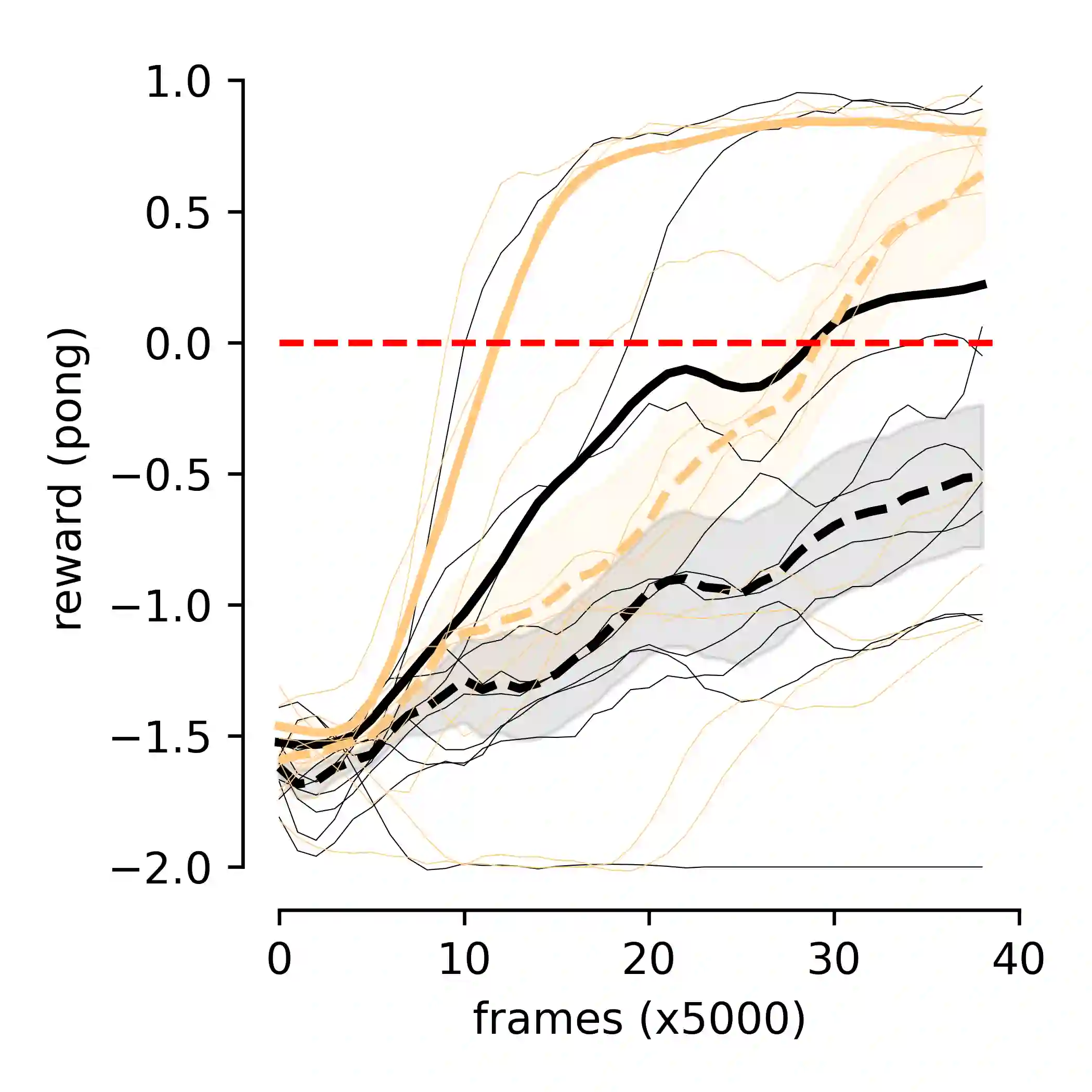 翻译:人类和动物在练习数小时后可以学习新技能,而目前的强化学习算法需要大量数据才能取得良好的表现。最近的模型方法通过减少与环境的必要互动以学习理想的政策,显示了有希望的成果。然而,这些方法需要生物不可信的成份,如详细储存老经验,以及长时间的离线学习。学习和利用字型的最佳方式仍是一个尚未解决的问题。从生物学得到启发后,我们建议做梦可能是使用内型的有效方便手段。我们建议建立一个双模(试剂和模型)的神经神经网络,在其中大大促进“呼吸”(在模型模拟环境中的新经验)的学习。我们还探索“规划”是一种在线梦想的替代方法,它显示类似的性能。重要的是,我们的模型并不要求详细储存经验,在网上学习世界模型和政策。此外,我们强调我们的网络是由神经元组成的,进一步增加神经形态硬件的生物可视性和可执行性。