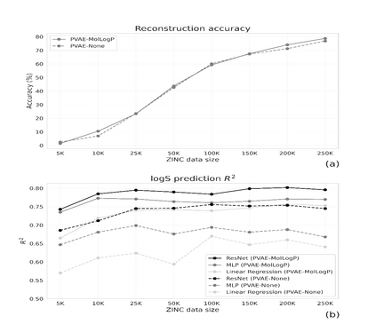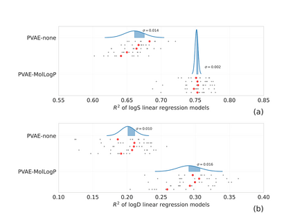 翻译:收集化学信息学中许多重要任务的标签数据需要时间,需要花费昂贵的实验。近年来,机器学习被用来利用大型无标签分子数据集学习分子的丰富表现,并传授知识,以有限数据集解决更具挑战性的任务。变式自动编码器是建议用于化学财产预测和分子生成任务转让的工具之一。在这项工作中,我们提出了一个简单的方法,通过将相关分子描述器的更多信息纳入变式自动编码器所学的演示中来改进机器学习模型的化学财产预测性能。我们核实了三种属性预测要求的方法。我们探讨了集成描述器的数量、描述器与目标属性、数据集大小等的相关性。最后,我们展示了属性预测模型的性能与属性预测数据集与代表空间内较大无标签数据集之间的距离之间的关系。