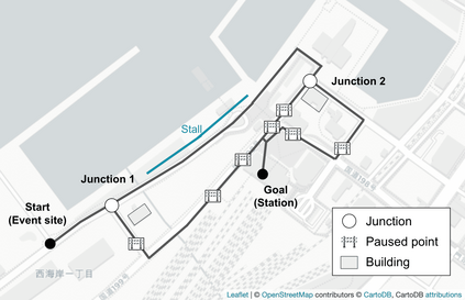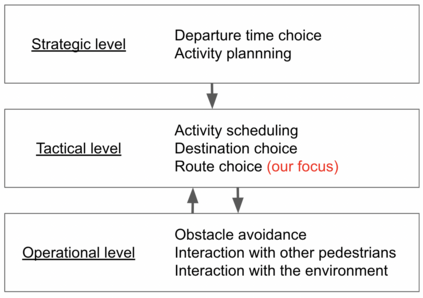 翻译:以数学模型来表达人群移动的模拟和模拟方法正在广泛和积极地研究,以了解人群移动和解决人群事故。关于人群建模的现有文献仅侧重于步行行为的决策。然而,选择路线的决策是一个更高层次的决定,也应该建模,以构建更实用的模拟。此外,使用真实数据对包含路线选择模型的人群模拟进行复制评价是不够的。因此,我们推广并提议了一个人群模拟框架,其中包括实际人群移动测量、路由选择模型估计和人群模拟器的构建。我们用混杂选择模型作为路线选择模型,用社会力量模型作为行走模型。在实验中,我们测量了在剧院的疏散演习和消防活动中的人群移动,并证明包含路线选择模型的人群模拟可以更准确地复制真正的大规模人群运动。</s>