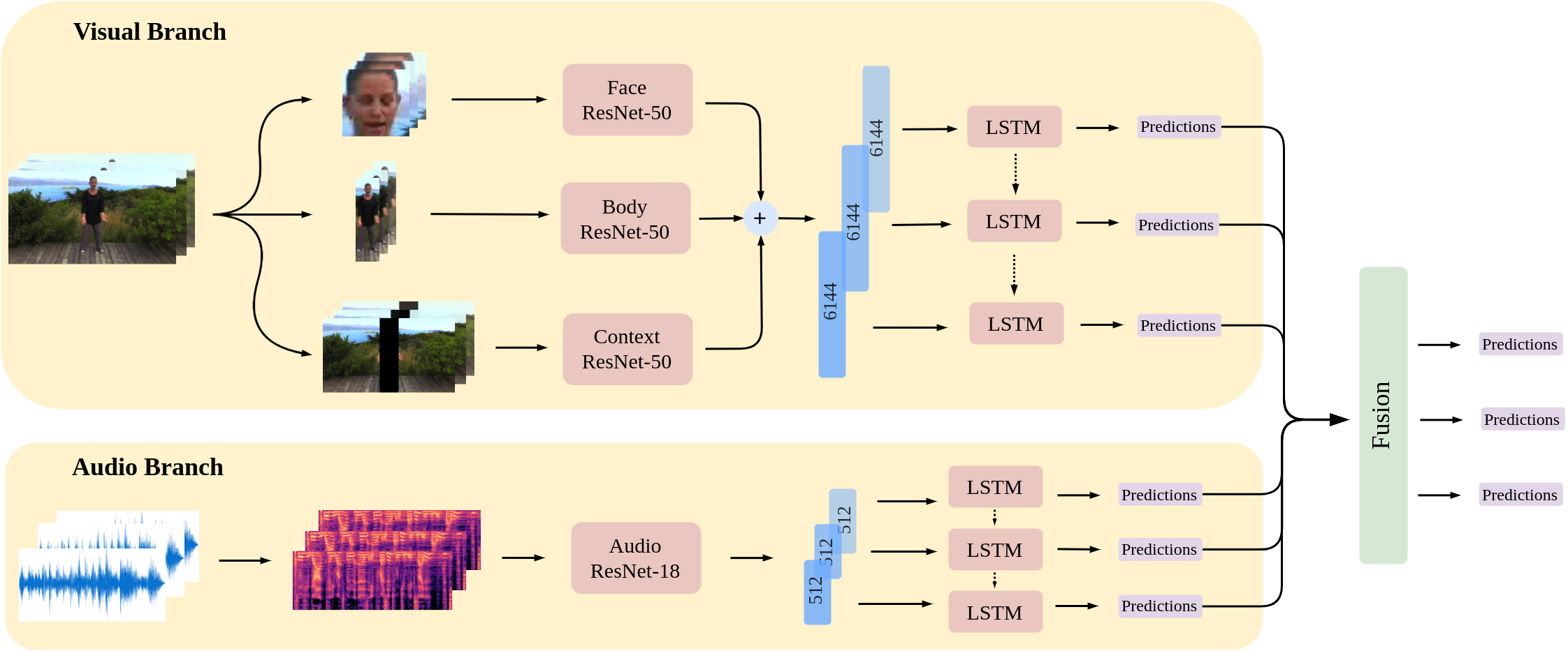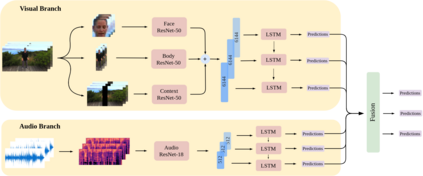 翻译:在这项工作中,我们在第二届讲习班和竞争模拟分析竞赛(ABAW)的场地内,处理基于视频的视听情感识别任务:完全依靠提取面部特征的标准方法往往没有准确的情感预测,因为由于头部/身体取向、分辨率低和光度差,上述感官信息来源因头部/身体取向、分辨率低和光度差而无法获取。我们渴望通过利用身体和背景特征,作为更广泛的情感识别框架的一部分,来缓解这一问题。标准CNN-RNNN级联赛是我们提议的从序列到序列分析(seq2seq)学习模式的支柱。除了通过“textit{RGB} 输入模式学习之外,我们还在通过提取的Mel-spectrographs序列运作一个音乐流。我们对挑战性和新组装Affffect-in-the-wild-2(Aff-Wild2)的数据集,验证我们的方法优于现有方法,同时将上述模块正确纳入网络的Sentemememb-Arusireal-artiumrus_arto protal proty_to to All the provest recialst surst regnistration.