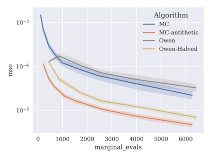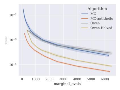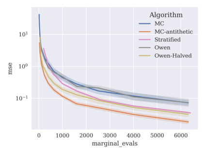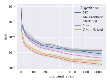 翻译:基于遮蔽值的游戏理论归因技术被用于解释黑盒机器学习模型,但精确的计算方法一般是NP-硬的,要求非三角模型采用近似方法。由于可以将遮蔽值的计算作为一组变相的总和来表示,一种共同的方法是抽样这些变异的子集。不幸的是,标准的蒙特卡洛采样方法可能显示缓慢的趋同,而更先进的准蒙太罗方法尚未应用于变异空间。为了解决这个问题,我们根据两种近似方法来调查新的方法,并进行实验性比较。首先,我们在包含变异函数的RKHS中展示二次方位技术,使用Mallows内核结合内核和Bayesan的二次方位。RKHS的视角还会导致半蒙特·卡洛型错误的界限,同时根据变异度确定一个模型。第二,我们利用超视距 $\mathb{S ⁇ 2} $ 和 permutiming 方法进行二次对比。我们展示了二次的二次变形技术,以便用实际的模型对数值作出重大分析。