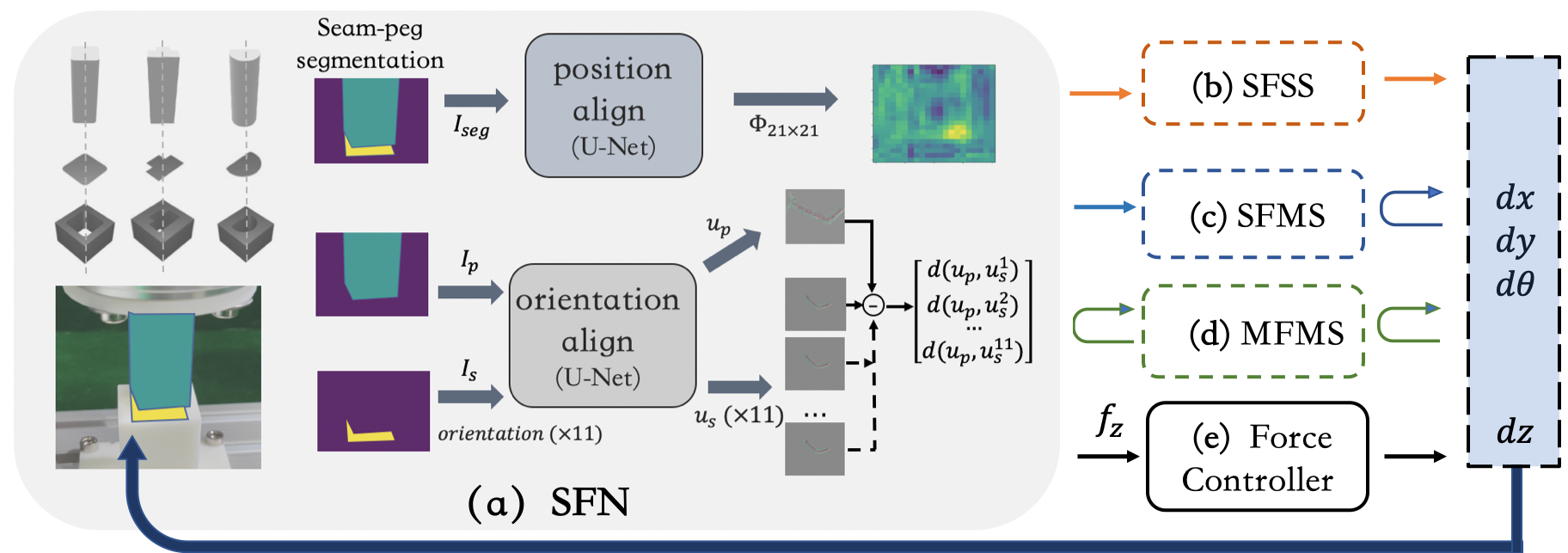 翻译:插入 插入 任务, 人类会关注连接和洞之间的接缝, 并尝试通过视觉反馈不断填充它 。 通过模仿人类的行为, 我们设计建筑结构时, 使用以接缝代表为根据的定位和定向估计符, 这证明与隐蔽的固定地理配对是普通的。 通过用强化学习将测算器放入闭环控制中, 我们进一步实现了与基线方法相比更高或可比的成功率、 效率和稳健性。 该政策在模拟中完全接受模拟培训, 没有任何人工干预。 要实现模拟, 一个具有自动数据收集和标签的可学习分解模块, 可以很容易地接受培训, 将感知和政策分解开来, 帮助经过模拟培训的模型快速适应真实世界, 且努力微不足道。 在模拟和物理机器人上展示了结果。 代码、 视频和补充材料可在 https://github.com/xielanang555/SFNF. gitt 上查阅 。