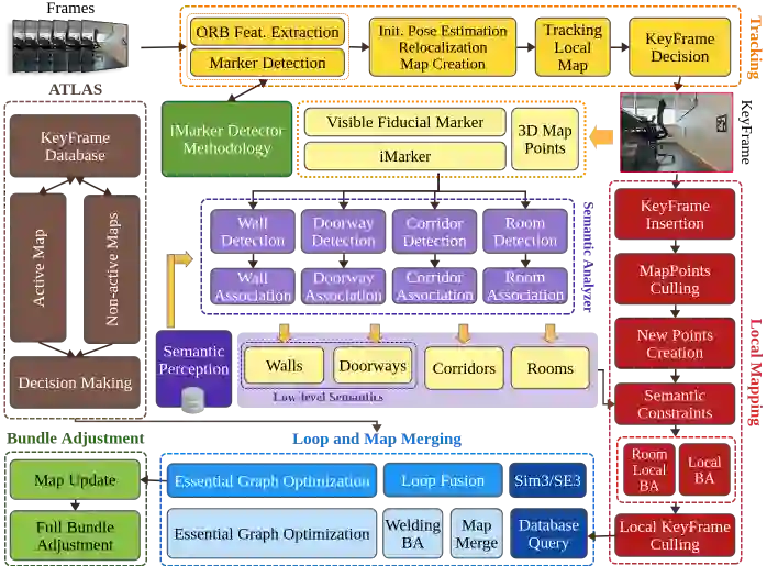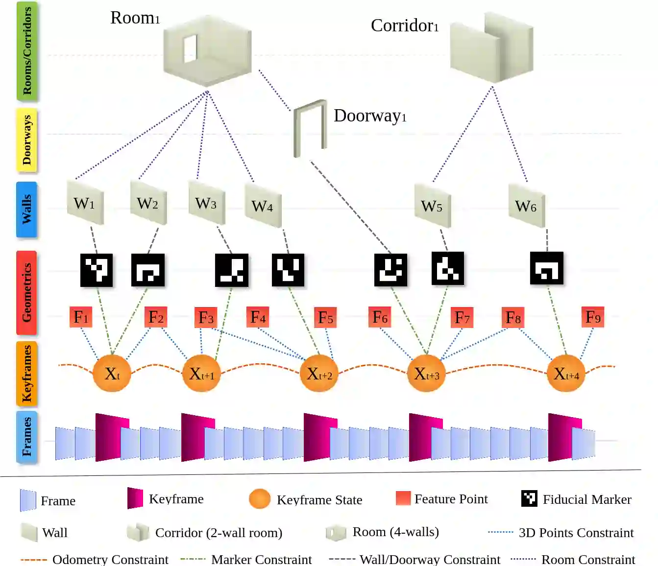Situational Graphs (S-Graphs) merge geometric models of the environment generated by Simultaneous Localization and Mapping (SLAM) approaches with 3D scene graphs into a multi-layered jointly optimizable factor graph. As an advantage, S-Graphs not only offer a more comprehensive robotic situational awareness by combining geometric maps with diverse hierarchically organized semantic entities and their topological relationships within one graph, but they also lead to improved performance of localization and mapping on the SLAM level by exploiting semantic information. In this paper, we introduce a vision-based version of S-Graphs where a conventional \ac{VSLAM} system is used for low-level feature tracking and mapping. In addition, the framework exploits the potential of fiducial markers (both visible as well as our recently introduced transparent or fully invisible markers) to encode comprehensive information about environments and the objects within them. The markers aid in identifying and mapping structural-level semantic entities, including walls and doors in the environment, with reliable poses in the global reference, subsequently establishing meaningful associations with higher-level entities, including corridors and rooms. However, in addition to including semantic entities, the semantic and geometric constraints imposed by the fiducial markers are also utilized to improve the reconstructed map's quality and reduce localization errors. Experimental results on a real-world dataset collected using legged robots show that our framework excels in crafting a richer, multi-layered hierarchical map and enhances robot pose accuracy at the same time.