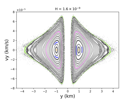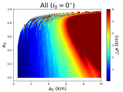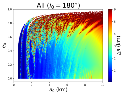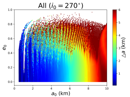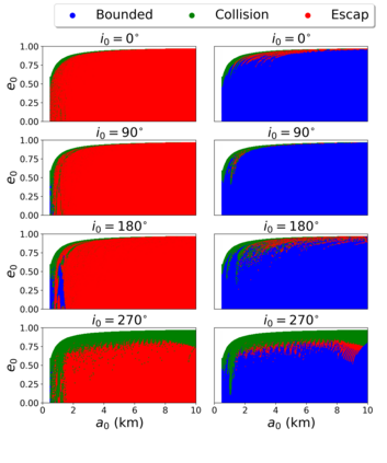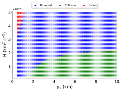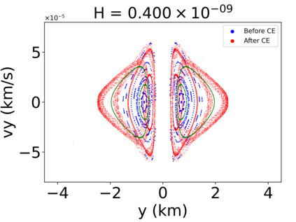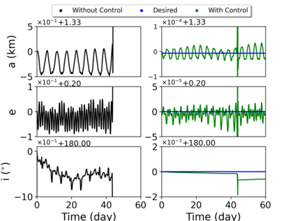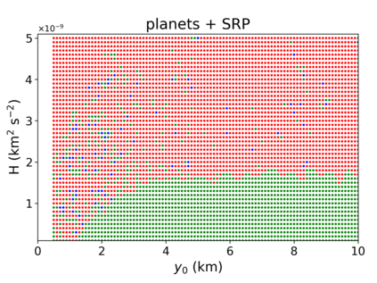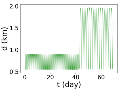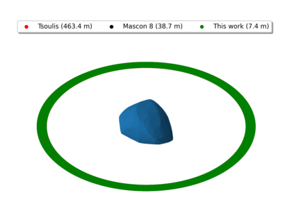 翻译:我们的目标是对小行星轨道上的航天器动态(99942)提供初步方法(99942)Apophis在接近地球时对小行星轨道上的航天器动态(99942)提供初步方法;从目标的多面形的物理特性衍生出目标的物理特性,将每个四面体分配到中心的一个点质量;与以前评估引力潜力的方法相比,这大大缩短了计算处理时间;与Apophis相近的部分表面的表面,考虑到太阳、行星和SRP的引力扰动(99942),而不是考虑到太阳、行星和SRP的引力扰动(4美元),因此,地球是受影响最大的区域,使大多数轨道在轨迹上碰撞或逃离系统。此外,从2029年3月1日开始的轨道对每个四面的物理特性进行了数字分析,从而大大缩短了计算过程的时间。 与A级轨道的半偏移速度相比,距离不超过2公里,考虑太阳、行星和SRPM(0.4美元)的引力扰动变化。然而,任何被调查的区域都不可能通过考虑将航天器插入Apotis周围的自然轨道,从而在接近Apohis,从而在接近轨道的近的轨道上,我们在一个稳定的轨道上运用一个成功的轨道上,最后的轨道控制系统中,最后的轨道上,我们使用一个成功的控制一个我们的一个例例例。