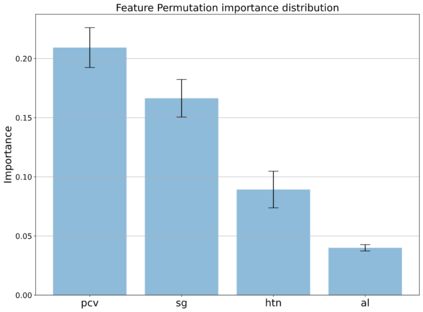 翻译:目前,慢性肾脏疾病(CKD)的发病率正在全球上升,对卫生系统的成本也很高。延迟确认意味着由于肾功能逐渐丧失而过早死亡。利用数据挖掘来发现CKD指标的微妙模式将有助于实现早期诊断。这项工作提出开发和评价一个可解释的预测模型,支持临床医生早期诊断CKD病人。模型开发基于一个数据管理管道,该管道检测混合树算法和分类性能所选特征的最佳组合。通过管道获得的结果相当于文献中确定的最佳CKD预测模型的性能。此外,文件的主要贡献涉及一种解释性驱动方法,使选择保持准确性和可解释性之间的平衡的最佳预测模型。因此,CKD最平衡的可解释性预测模型在四种特征(组合细胞价值、具体重力、相册和高血压)上采用一个最佳组合组合。通过交叉估价技术和新的不可见数据,使CD的预测性模型的早期结果得到最低的精确性。此外,通过分析模型的精确性,通过分析模型的精确性能,确定C型分析成本的可靠性,从而确定成本的最小性。