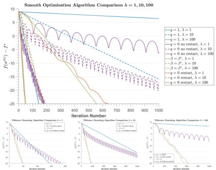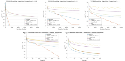 翻译:在此理论中, 我们提供对变异图像问题中使用的不同常规化术语的彻底调查, 以及这些问题的详细优化进程。 我们首先研究平滑问题和部分非悬浮问题, 分别表现为 Tikhoonov 拆卸和 Total Variation (TV) 淡化。 对于 Tikhonov 拆卸, 我们研究一种加速梯度方法, 恢复适应性重现, 显示一个非常快速的趋同率。 但是, 将这种快速算法应用到电视淡化中并不简单, 原因是其结构的常规化结果不显眼。 要解决这个问题, 我们建议使用双轨化的常规问题, 将这种非双轨化的问题转换为平滑的。 然而, 我们注意到, Tikhonov 和电视的常规化方法都有缺陷, 其形式是图像边缘和更清洁的工艺。 为了克服这些缺陷, 我们提议对总化( TGVVV) 常规化的结果进行新式的调整, 也就是, 将快速的变异性变现的变现, 将结果显示为同步性变现,, 将同步的变现的变变的变的变的变的变。