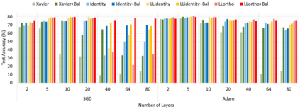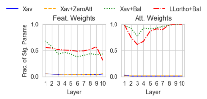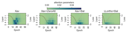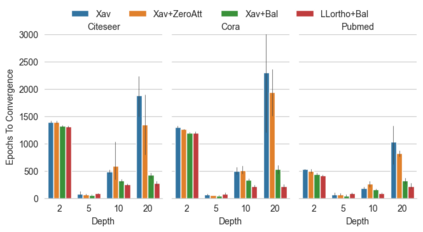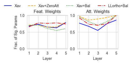 While the expressive power and computational capabilities of graph neural networks (GNNs) have been theoretically studied, their optimization and learning dynamics, in general, remain largely unexplored. Our study undertakes the Graph Attention Network (GAT), a popular GNN architecture in which a node's neighborhood aggregation is weighted by parameterized attention coefficients. We derive a conservation law of GAT gradient flow dynamics, which explains why a high portion of parameters in GATs with standard initialization struggle to change during training. This effect is amplified in deeper GATs, which perform significantly worse than their shallow counterparts. To alleviate this problem, we devise an initialization scheme that balances the GAT network. Our approach i) allows more effective propagation of gradients and in turn enables trainability of deeper networks, and ii) attains a considerable speedup in training and convergence time in comparison to the standard initialization. Our main theorem serves as a stepping stone to studying the learning dynamics of positive homogeneous models with attention mechanisms.
