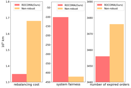 Electric vehicles (EVs) play critical roles in autonomous mobility-on-demand (AMoD) systems, but their unique charging patterns increase the model uncertainties in AMoD systems (e.g. state transition probability). Since there usually exists a mismatch between the training and test/true environments, incorporating model uncertainty into system design is of critical importance in real-world applications. However, model uncertainties have not been considered explicitly in EV AMoD system rebalancing by existing literature yet, and the coexistence of model uncertainties and constraints that the decision should satisfy makes the problem even more challenging. In this work, we design a robust and constrained multi-agent reinforcement learning (MARL) framework with state transition kernel uncertainty for EV AMoD systems. We then propose a robust and constrained MARL algorithm (ROCOMA) with robust natural policy gradients (RNPG) that trains a robust EV rebalancing policy to balance the supply-demand ratio and the charging utilization rate across the city under model uncertainty. Experiments show that the ROCOMA can learn an effective and robust rebalancing policy. It outperforms non-robust MARL methods in the presence of model uncertainties. It increases the system fairness by 19.6% and decreases the rebalancing costs by 75.8%.
