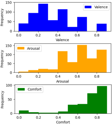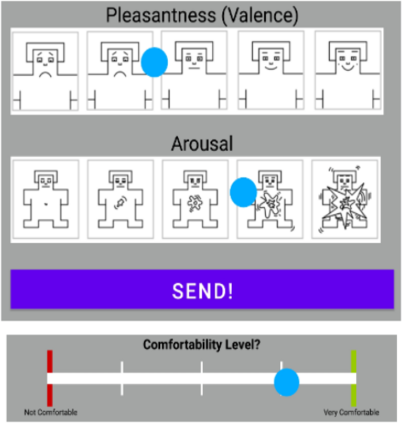 Many attempts have been made at estimating discrete emotions (calmness, anxiety, boredom, surprise, anger) and continuous emotional measures commonly used in psychology, namely `valence' (The pleasantness of the emotion being displayed) and `arousal' (The intensity of the emotion being displayed). Existing methods to estimate arousal and valence rely on learning from data sets, where an expert annotator labels every image frame. Access to an expert annotator is not always possible, and the annotation can also be tedious. Hence it is more practical to obtain self-reported arousal and valence values directly from the human in a real-time Human-Robot collaborative setting. Hence this paper provides an emotion data set (HRI-AVC) obtained while conducting a human-robot interaction (HRI) task. The self-reported pair of labels in this data set is associated with a set of image frames. This paper also proposes a spatial and temporal attention-based network to estimate arousal and valence from this set of image frames. The results show that an attention-based network can estimate valence and arousal on the HRI-AVC data set even when Arousal and Valence values are unavailable per frame.