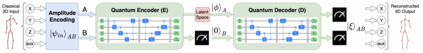 Existing methods for learning 3D representations are deep neural networks trained and tested on classical hardware. Quantum machine learning architectures, despite their theoretically predicted advantages in terms of speed and the representational capacity, have so far not been considered for this problem nor for tasks involving 3D data in general. This paper thus introduces the first quantum auto-encoder for 3D point clouds. Our 3D-QAE approach is fully quantum, i.e. all its data processing components are designed for quantum hardware. It is trained on collections of 3D point clouds to produce their compressed representations. Along with finding a suitable architecture, the core challenges in designing such a fully quantum model include 3D data normalisation and parameter optimisation, and we propose solutions for both these tasks. Experiments on simulated gate-based quantum hardware demonstrate that our method outperforms simple classical baselines, paving the way for a new research direction in 3D computer vision. The source code is available at https://4dqv.mpi-inf.mpg.de/QAE3D/.