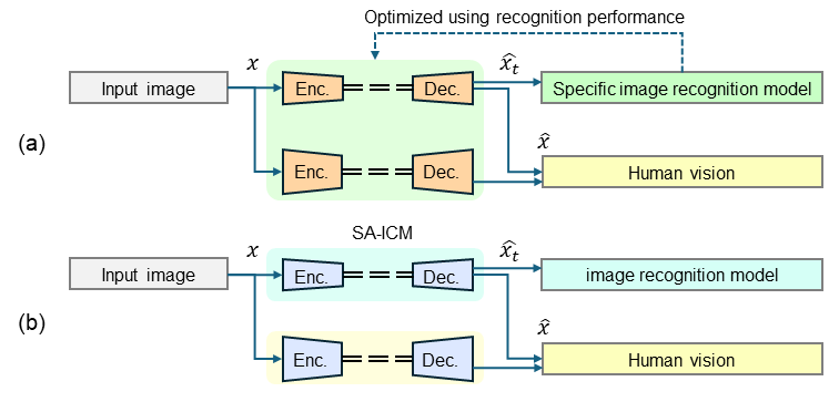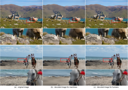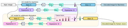 As image recognition models become more prevalent, scalable coding methods for machines and humans gain more importance. Applications of image recognition models include traffic monitoring and farm management. In these use cases, the scalable coding method proves effective because the tasks require occasional image checking by humans. Existing image compression methods for humans and machines meet these requirements to some extent. However, these compression methods are effective solely for specific image recognition models. We propose a learning-based scalable image coding method for humans and machines that is compatible with numerous image recognition models. We combine an image compression model for machines with a compression model, providing additional information to facilitate image decoding for humans. The features in these compression models are fused using a feature fusion network to achieve efficient image compression. Our method's additional information compression model is adjusted to reduce the number of parameters by enabling combinations of features of different sizes in the feature fusion network. Our approach confirms that the feature fusion network efficiently combines image compression models while reducing the number of parameters. Furthermore, we demonstrate the effectiveness of the proposed scalable coding method by evaluating the image compression performance in terms of decoded image quality and bitrate.