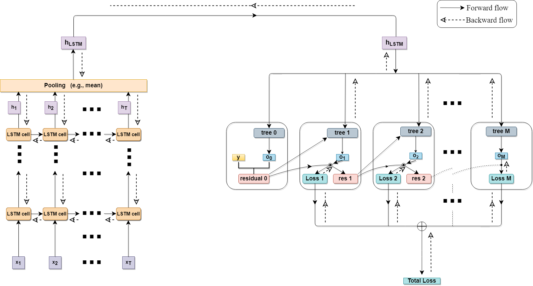 翻译:我们调查在线环境中的非线性预测,并引入一种混合模型,通过端到端结构,有效减轻对传统非线性预测/回归方法手工设计特点和人工模型选择问题的需要,特别是,我们使用循环结构从顺序信号中提取特征,同时保存国家信息,即历史,并提升决策树以产生最终产出。连接是端到端的方式,我们利用随机梯度下降,共同优化整个结构,为此,我们还提供后向传输更新方程式。特别是,我们使用一个经常性神经网络(LSTM),从连续数据中提取适应性特征,并使用一个梯度增强机械(软GBDT),以进行有效监管的回归。我们的框架是通用的,这样可以使用其他深层学习结构进行特征提取(如RNNS和GRUs)和机器学习算法,只要这些算法是不同的,就可以做出决策。我们展示了我们的合成数据算法的学习行为以及各种实际生命数据研究常规方法的显著性改进。此外,我们公开分享了拟议的源代码,以便进一步研究。
