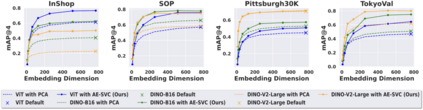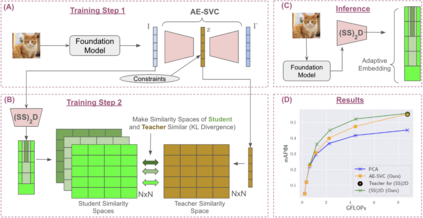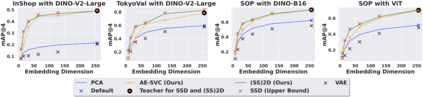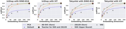 Image retrieval is crucial in robotics and computer vision, with downstream applications in robot place recognition and vision-based product recommendations. Modern retrieval systems face two key challenges: scalability and efficiency. State-of-the-art image retrieval systems train specific neural networks for each dataset, an approach that lacks scalability. Furthermore, since retrieval speed is directly proportional to embedding size, existing systems that use large embeddings lack efficiency. To tackle scalability, recent works propose using off-the-shelf foundation models. However, these models, though applicable across datasets, fall short in achieving performance comparable to that of dataset-specific models. Our key observation is that, while foundation models capture necessary subtleties for effective retrieval, the underlying distribution of their embedding space can negatively impact cosine similarity searches. We introduce Autoencoders with Strong Variance Constraints (AE-SVC), which, when used for projection, significantly improves the performance of foundation models. We provide an in-depth theoretical analysis of AE-SVC. Addressing efficiency, we introduce Single-shot Similarity Space Distillation ((SS)$_2$D), a novel approach to learn embeddings with adaptive sizes that offers a better trade-off between size and performance. We conducted extensive experiments on four retrieval datasets, including Stanford Online Products (SoP) and Pittsburgh30k, using four different off-the-shelf foundation models, including DinoV2 and CLIP. AE-SVC demonstrates up to a $16\%$ improvement in retrieval performance, while (SS)$_2$D shows a further $10\%$ improvement for smaller embedding sizes.