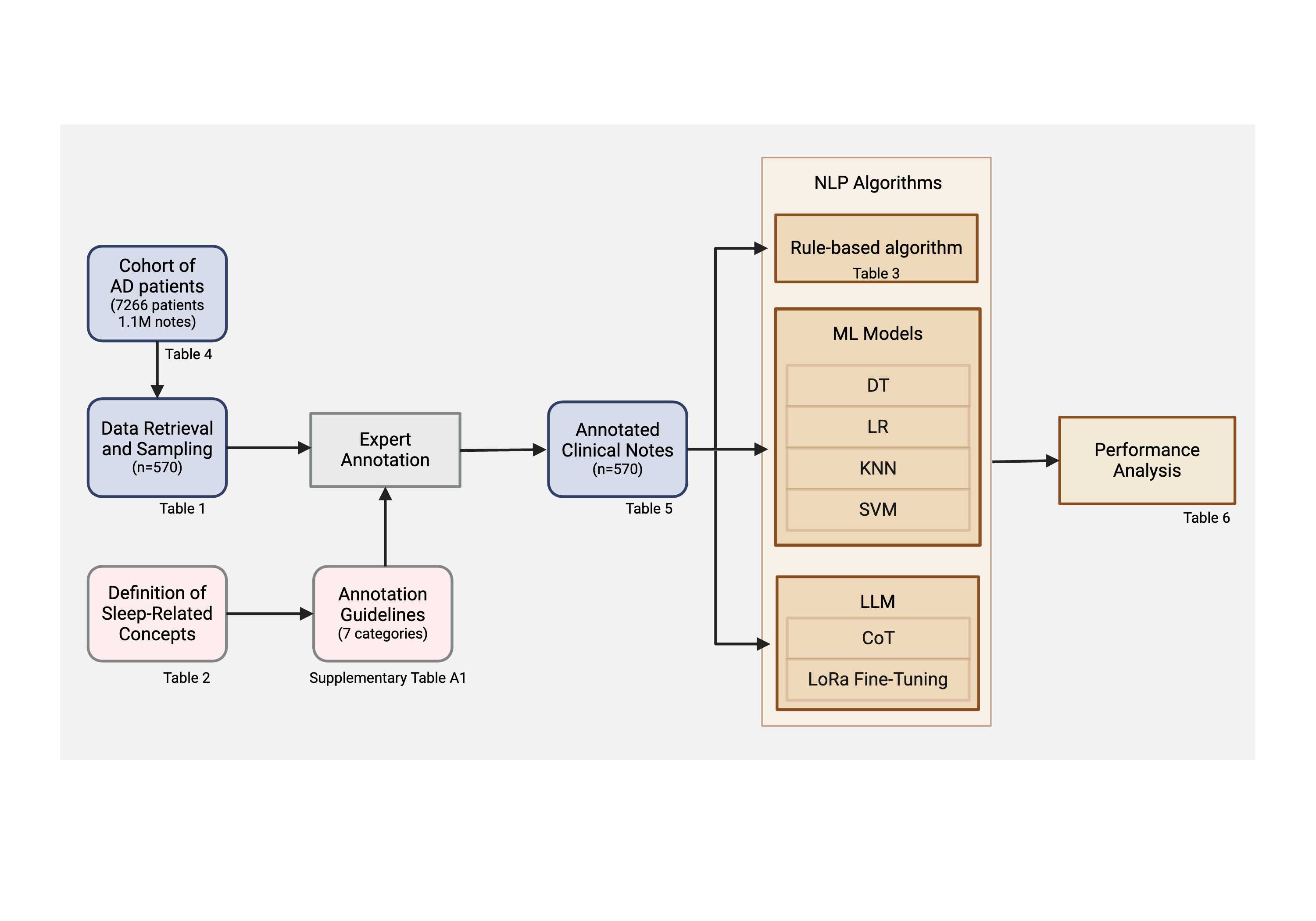Alzheimer's Disease (AD) is the most common form of dementia in the United States. Sleep is one of the lifestyle-related factors that has been shown critical for optimal cognitive function in old age. However, there is a lack of research studying the association between sleep and AD incidence. A major bottleneck for conducting such research is that the traditional way to acquire sleep information is time-consuming, inefficient, non-scalable, and limited to patients' subjective experience. A gold standard dataset is created from manual annotation of 570 randomly sampled clinical note documents from the adSLEEP, a corpus of 192,000 de-identified clinical notes of 7,266 AD patients retrieved from the University of Pittsburgh Medical Center (UPMC). We developed a rule-based Natural Language Processing (NLP) algorithm, machine learning models, and Large Language Model(LLM)-based NLP algorithms to automate the extraction of sleep-related concepts, including snoring, napping, sleep problem, bad sleep quality, daytime sleepiness, night wakings, and sleep duration, from the gold standard dataset. Rule-based NLP algorithm achieved the best performance of F1 across all sleep-related concepts. In terms of Positive Predictive Value (PPV), rule-based NLP algorithm achieved 1.00 for daytime sleepiness and sleep duration, machine learning models: 0.95 and for napping, 0.86 for bad sleep quality and 0.90 for snoring; and LLAMA2 with finetuning achieved PPV of 0.93 for Night Wakings, 0.89 for sleep problem, and 1.00 for sleep duration. The results show that the rule-based NLP algorithm consistently achieved the best performance for all sleep concepts. This study focused on the clinical notes of patients with AD, but could be extended to general sleep information extraction for other diseases.