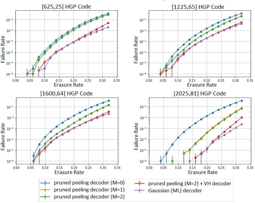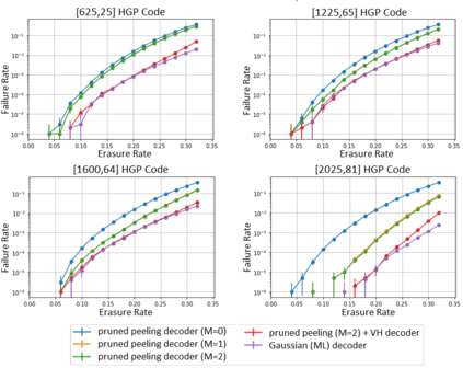 翻译:我们建议一个解码器,用于纠正高光度产品编码的去除,这些编码构成量子LDPC编码最受欢迎的组之一。我们的数值模拟显示,这个解码器提供了在O(N)2比特操作中可以执行的最大可能性解码器的近似值,而N是量子编码的长度。这个解码器的概率化版本可以在O(N)1.5比特操作中执行。