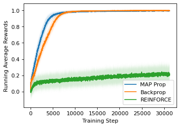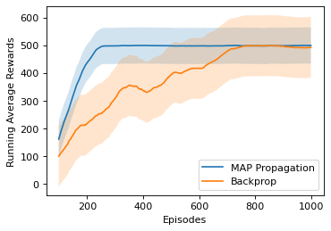 翻译:最先进的深层次学习算法大多依赖梯度回路变换法来训练深层人工神经网络,通常认为这种神经网络在生物学上是难以置信的。对于一个受过强化学习任务或监督学习任务训练的随机单元网络来说,一种生物学上可行的学习方式就是由REINFORCE来训练每个单元。在这个案例中,只有全球奖励信号才需要向所有单元广播,而所提供的学习规则是当地性的,这可以被解释为在生物学上观测到的奖励性调制悬浮依赖性塑料(R-STDP),虽然这种学习规则遵循回报的梯度,但它存在很大的差异,无法用于在实践上训练深层次的网络。在这个文件中,我们建议一种叫作MAP传播的算法,可以大大减少这种差异,同时保留当地学习规则的特性。不同于以前关于地方学习规则的工作(例如对比性变异性变异性),它通常适用于非定向的模型,在不统一学习任务中,我们提议的算法适用于在强化学习任务时指导模型。我们表明,新提议的演算法可以加强新的演算系统,在学习速度时可以解决共同任务。