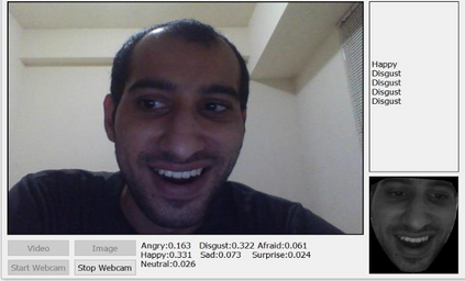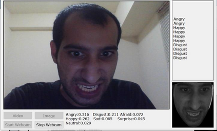 翻译:每个随机图像的亮度、对比度和分辨率因人而异,各异,每个随机图像的亮度、对比度和分辨率也不同。这就是为什么辨别面部表情非常困难的原因。本文章建议建立一个高效的系统,对七种人类基本情感(愤怒、厌恶、恐惧、快乐、悲伤、惊讶和中性)进行面部情感识别,使用共进神经神经网络(CNN)来预测和分配每种情感的概率。因此,由于深层学习模型从数据中学习,因此,我们提议的系统处理每个图像,并采用各种预处理步骤进行更好的预测。每个图像都首先通过面部检测算法传送,以纳入培训数据集。由于CNN需要大量的数据,我们使用各种过滤器复制了我们的数据。预处理的80*100大小图像被传送到CNN第一层。使用了三个相动层,然后是集合层和三层密密层。由于将两个公开提供的数据集JAFFFE和 KDEFF. 90%的数据用于培训。由于CNN需要大量的数据,我们使用各种过滤器来复制数据,因此使用了10 % 用于测试。我们所设计的图形的图像界面。我们用了一个最精确的系统。