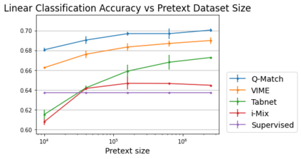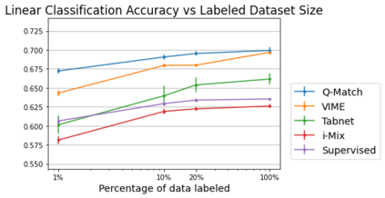 翻译:在半监督的学习中,师生分布比对成功地改善了模型使用未贴标签的数据以及少数标签样本的性能。 在本文中,我们的目标是在自我监督的设置中复制这一成功,因为我们在培训前无法取得任何标签数据。 我们引入了我们的算法Q-Match, 并展示了通过使用未贴标签数据集样本嵌入队列来诱导教师在不了解下游等级的情况下进行教师分配的可能性。 我们的研究侧重于表格数据集,并显示在测量下游分类性能时,Q-Match优于以前自我监督的学习技术。 此外,我们展示了我们的方法是,在下游培训所需的标签以及培训前和规模所需的未贴标签数据数量方面,都非常符合标签和未贴标签数据的规模。