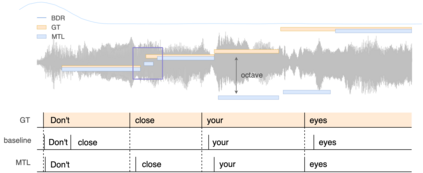 翻译:近年来,自动歌词校正方法的准确性有了显著提高。然而,许多现行方法都采用了自动语音识别(ASR)框架,而没有利用音乐特有的特性。 Pitch是歌声音乐中一个重要的音乐属性,但经常被当前系统忽略,因为歌词内容被视为独立于音调。然而,在实践中,这两个词之间的时间相关性随着音调的开始往往与调音启动相关。同时,音调通常在地面真实数据中以高时间准确度附加注释,而歌词的时间往往只在线(或单词)一级提供。在本文件中,我们建议对歌词校正采用多任务学习方法,以纳入音调,从而能够利用非常准确的时间信息的新来源。我们的结果表明,调和结果的准确性确实通过我们的方法得到了改进。作为额外的贡献,我们表明,将边界探测纳入强制对接算法会减少跨线错误,从而进一步提高准确性。