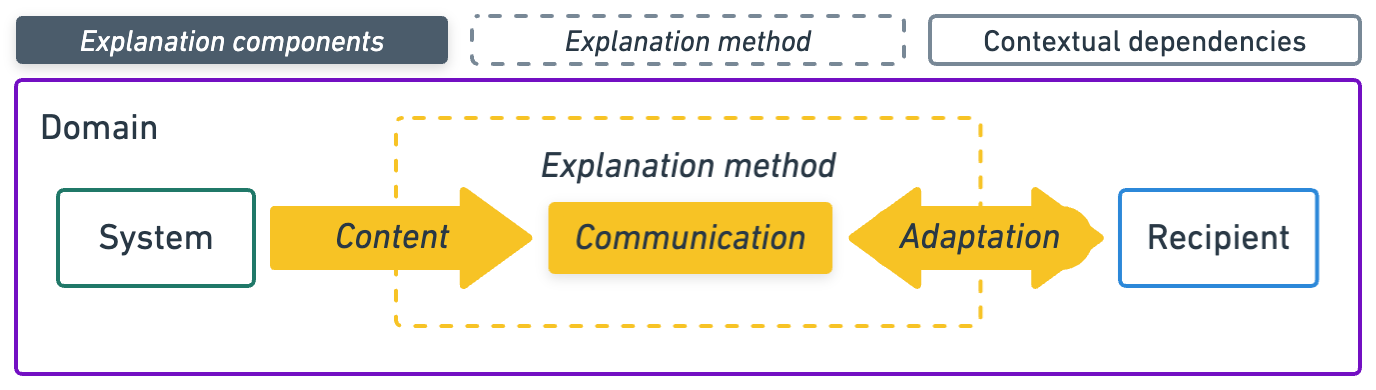 We propose a human-centred explanation method for rule-based automated decision-making systems in the legal domain. Firstly, we establish a conceptual framework for developing explanation methods, representing its key internal components (content, communication and adaptation) and external dependencies (decision-making system, human recipient and domain). Secondly, we propose an explanation method that uses a graph database to enable question-driven explanations and multimedia display. This way, we can tailor the explanation to the user. Finally, we show how our conceptual framework is applicable to a real-world scenario at the Dutch Tax and Customs Administration and implement our explanation method for this scenario.