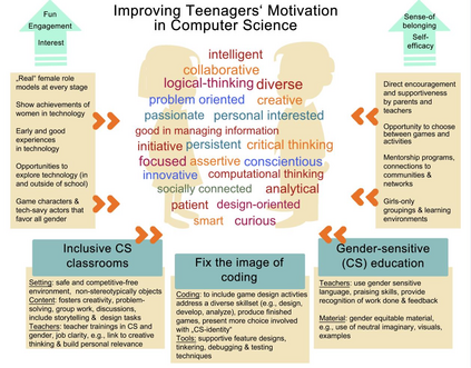 翻译:虽然女学生参与编码课程,但只有一小部分女学生计划选择职业道路时以计算机科学为主,选择职业道路时选择计算机科学(CS),在兴趣、归属感、自我效能和参与CS方面存在性别差异,这篇文章概述了CS的性别陈规定型观念,总结了CS班中12至15岁女生的负面印象,以及可能妨碍女孩对CS感兴趣的影响。本研究报告借鉴了对自2006年以来出版的28篇同行评审文章的系统审查,审查结论指出存在“计算机科学中的女孩”这种无助、无兴趣和不愉快的陈规定型形象,在早期就已经存在。 与CS的怪异性、书呆呆男同行相比,这一结构可能更加令人不安,因为它的根源是女性在CS课程中缺乏技术,不适应CS职业。 因此,女孩认为她们必须自然地具有超智能,才能在CS学习中学习,而不是积极、感兴趣和侧重于在那些领域取得成功。第二,根据审查、C-S的理念,通过C级课程来消除包容性和C级教育,在C中提出具有直接意义的建议。