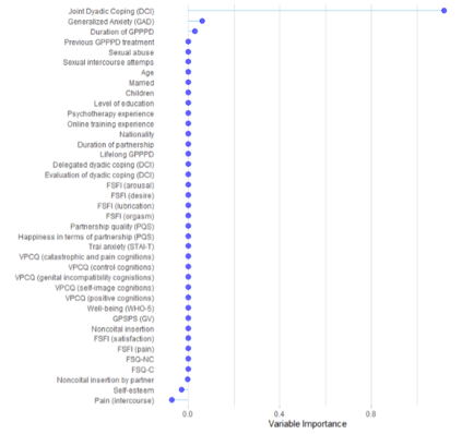 Genito-Pelvic Pain/Penetration-Disorder (GPPPD) is a common disorder but rarely treated in routine care. Previous research documents that GPPPD symptoms can be treated effectively using internet-based psychological interventions. However, non-response remains common for all state-of-the-art treatments and it is unclear which patient groups are expected to benefit most from an internet-based intervention. Multivariable prediction models are increasingly used to identify predictors of heterogeneous treatment effects, and to allocate treatments with the greatest expected benefits. In this study, we developed and internally validated a multivariable decision tree model that predicts effects of an internet-based treatment on a multidimensional composite score of GPPPD symptoms. Data of a randomized controlled trial comparing the internet-based intervention to a waitlist control group (N =200) was used to develop a decision tree model using model-based recursive partitioning. Model performance was assessed by examining the apparent and bootstrap bias-corrected performance. The final pruned decision tree consisted of one splitting variable, joint dyadic coping, based on which two response clusters emerged. No effect was found for patients with low dyadic coping ($n$=33; $d$=0.12; 95% CI: -0.57-0.80), while large effects ($d$=1.00; 95%CI: 0.68-1.32; $n$=167) are predicted for those with high dyadic coping at baseline. The bootstrap-bias-corrected performance of the model was $R^2$=27.74% (RMSE=13.22).