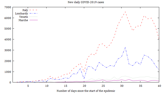 Coronavirus disease (COVID-2019) is a severe ongoing novel pandemic that is spreading quickly across the world. Italy, that is widely considered one of the main epicenters of the pandemic, registers the highest COVID-2019 death rates and death toll in the world, to the present day. In this article I estimate an autoregressive integrated moving average (ARIMA) model to forecast the epidemic trend over the period after March 30, 2020, by using the Italian epidemiological data at national and regional level. The data refer to the number of daily confirmed cases officially registered by the Italian Ministry of Health (www.salute.gov.it) for the period February 20 to March 30, 2020. The main advantage of this model is that it is easy to manage and fit. Moreover, it may give a first understanding of the basic trends, by suggesting the hypothetic epidemic's inflection point. Obviously, data need a continuous updating to better explain what is going on.