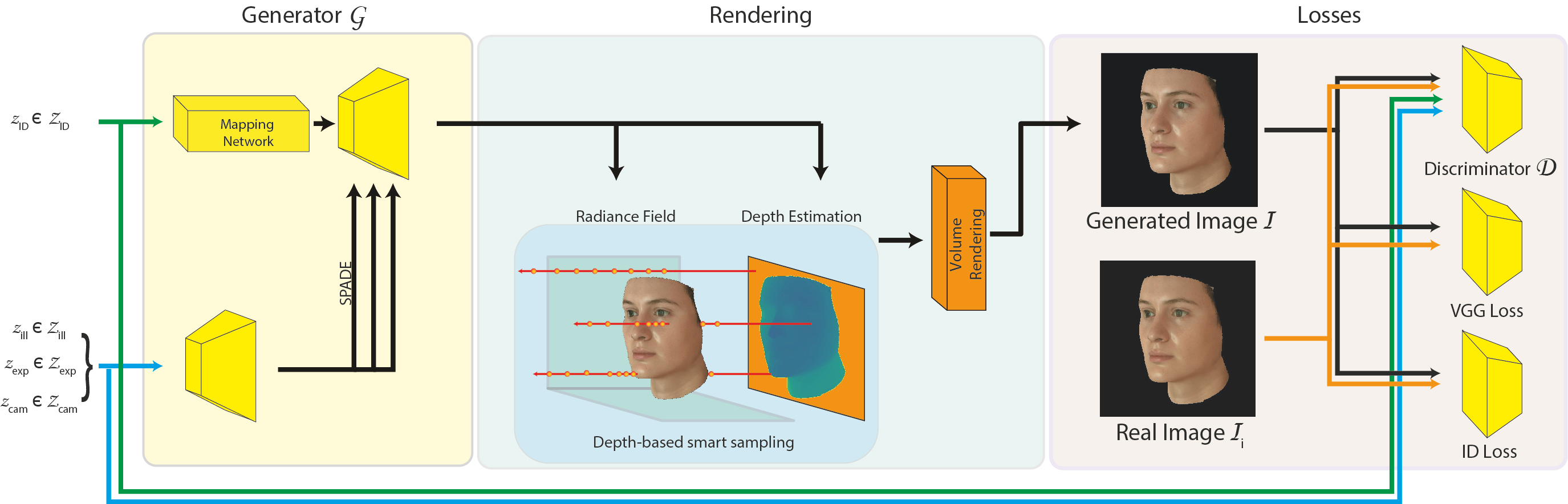 翻译:3D 移动式模型是一个主要的计算机视觉对象,有无数的应用,在过去20年中已经高度优化。深层基因网络的巨大改进为改进这些模型创造了各种可能性,并吸引了广泛的兴趣。此外,神经光亮场最近的进展正在革命新颖的对已知场景的合成。在这项工作中,我们提出了一个面部3D 移动模型,它利用了上述两个方面,可以准确地模拟对象的身份、形象和表达方式,并将它变成任意的光化。这是通过利用一个强大的深层次基于风格的生成器来克服神经光场、其僵硬性和交替速度的两大弱点来实现的。我们引入一个基于风格的基因网络,将所有的光亮场合成在一起,而仅将所需的神经光亮场样本制成。我们制作了一个庞大的、有标签的合成面部成数据集,并用这些数据对网络进行培训,以便它能够准确模拟和概括面部特征、面部和外观。最后,我们表明,这一模型可以准确地适应“内在的”面部发光光光场的面图像的表面和面部特征的提取。