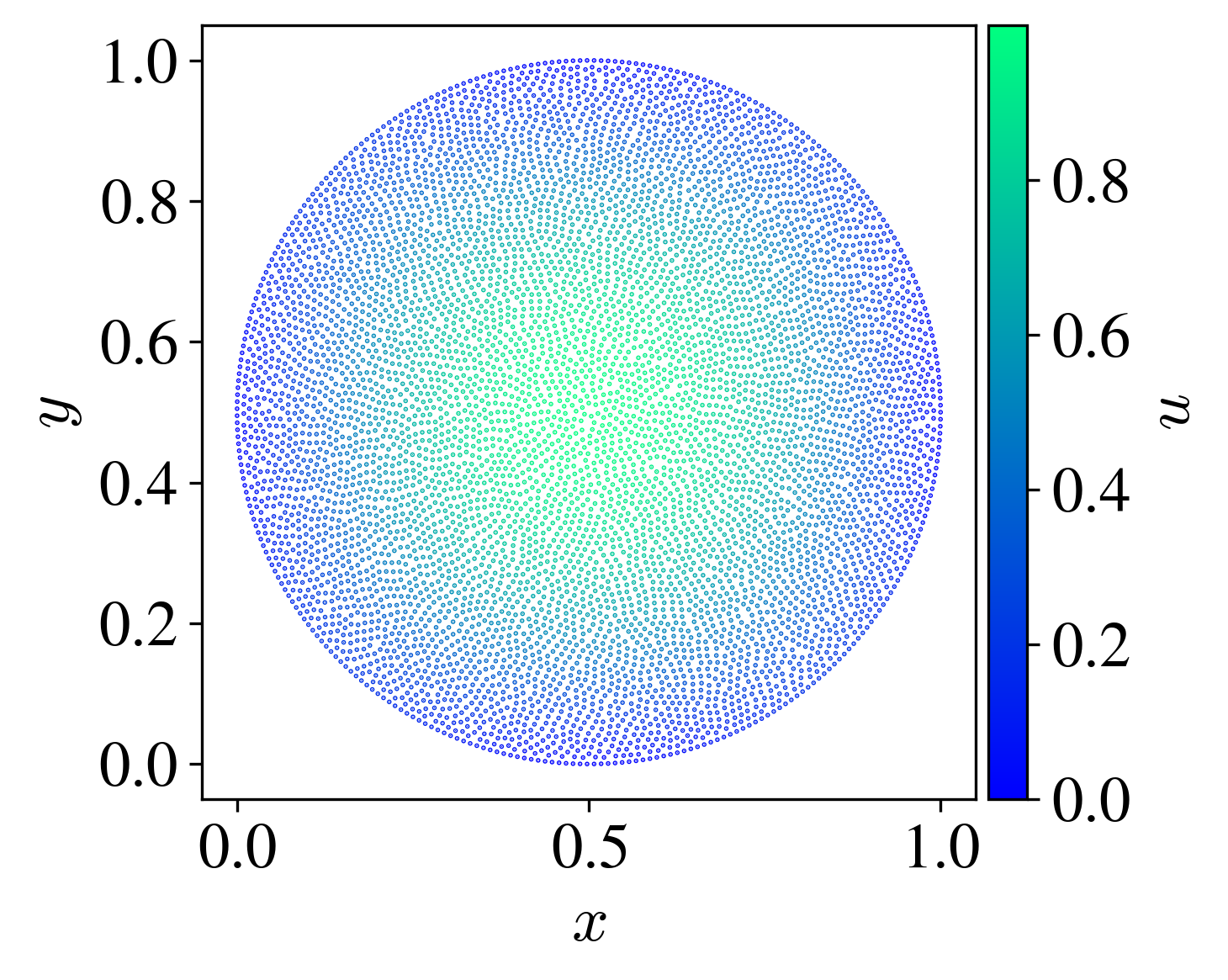翻译:在使用RBF-FD方法在扩散节点上求解偏微分方程时,必须选择模板大小之一。重点研究了具有单项式增强的多次谐波样条RBF,发现它以一种特别有趣的方式影响逼近精度-在增加模板大小下,解决方案误差会振荡。我们发现,我们可以将这种行为与带符号逼近误差的空间依赖性联系起来。基于这个观察结果,我们能够引入一种数字量,指示一个给定的模板大小是否在局部上是最优的。