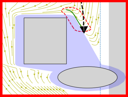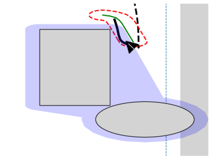 This article addresses the obstacle avoidance problem for setpoint stabilization and path-following tasks in complex dynamic 2-D environments that go beyond conventional scenes with isolated convex obstacles. A combined motion planner and controller is proposed for setpoint stabilization that integrates the favorable convergence characteristics of closed-form motion planning techniques with the intuitive representation of system constraints through Model Predictive Control (MPC). The method is analytically proven to accomplish collision avoidance and convergence under soft conditions, and it is extended to path-following control. Various simulation scenarios using a non-holonomic unicycle robot are provided to showcase the efficacy of the control scheme and its improved convergence results compared to standard path-following MPC approaches with obstacle avoidance.