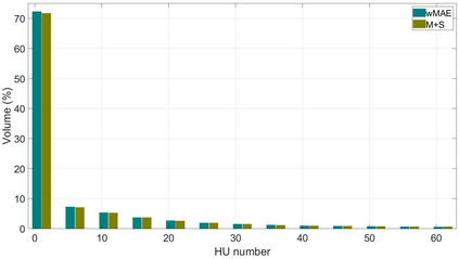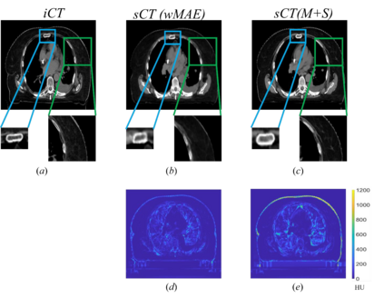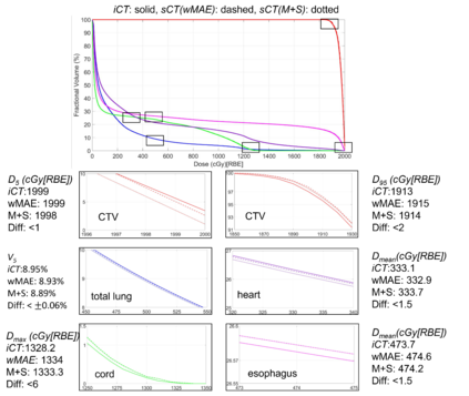 结果:该模型达到了2.1秒的速度和小于40HU的MAE。CDVH显示<5%的体素有大于185 HU的每体素绝对CT数字差异。