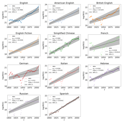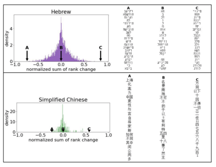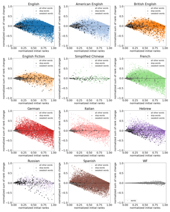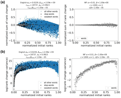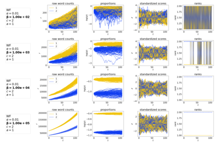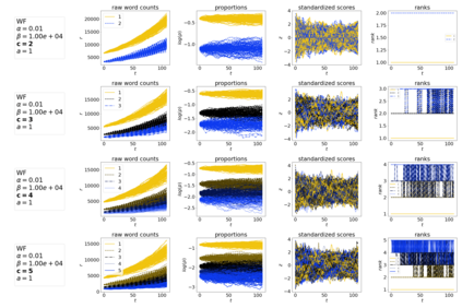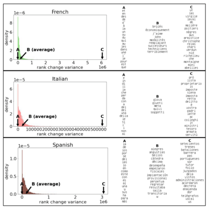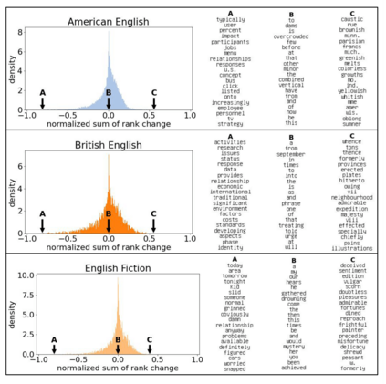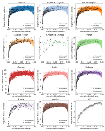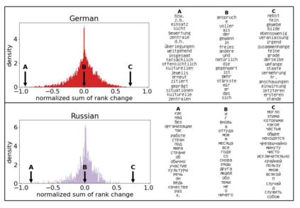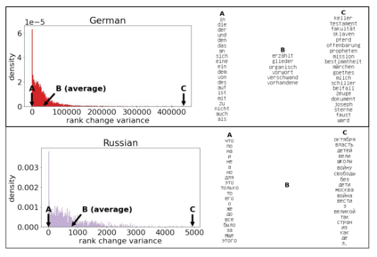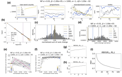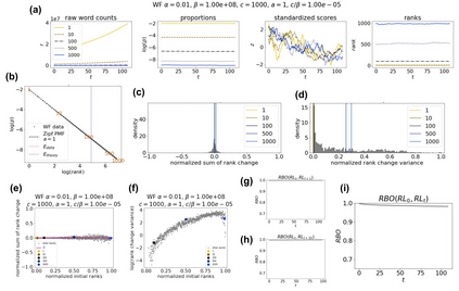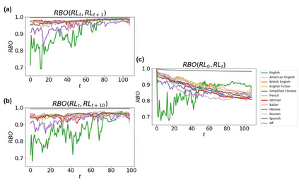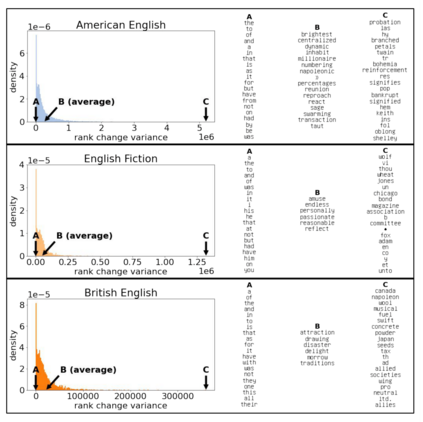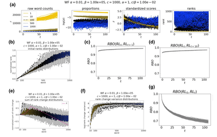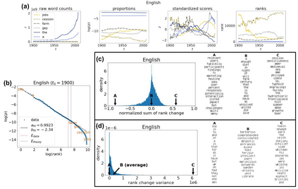 翻译:大型语言数据集的可用性使得以数据驱动的方式来研究语言变化。 这项工作通过调查Google Books Pasper ungram频率数据集来探索八种语言的字级动态。 我们观察了从1900年到2008年单数的级别变化,并将其与我们为分析而开发的Wright- Fisher启发型模型进行了比较。 模型模拟了一个中立的进化过程, 限制没有消失的单词。 这项工作解释了模型的数学框架 — 写成具有多重过渡概率的Markov链条 — 以显示文字在时间上的频率变化。 从我们在数据和模型中的观察看, 字级稳定性显示了两种特征:(1) 单调的军衔增加/减少, 或者说普通军衔保持不变。 根据我们的模型, 高调的单调的词往往更加稳定, 而低调的单词则比较不稳定。 以两种方式排列的词级变化:(a) 通过在时间上小增/定级的变化,以及(b) 通过在级别上增/降级的冲击, 单级显示两种特性的特性。 多数中阶语言在纯级中, 级的顺序上显示的是, 不变的顺序是稳定的顺序。