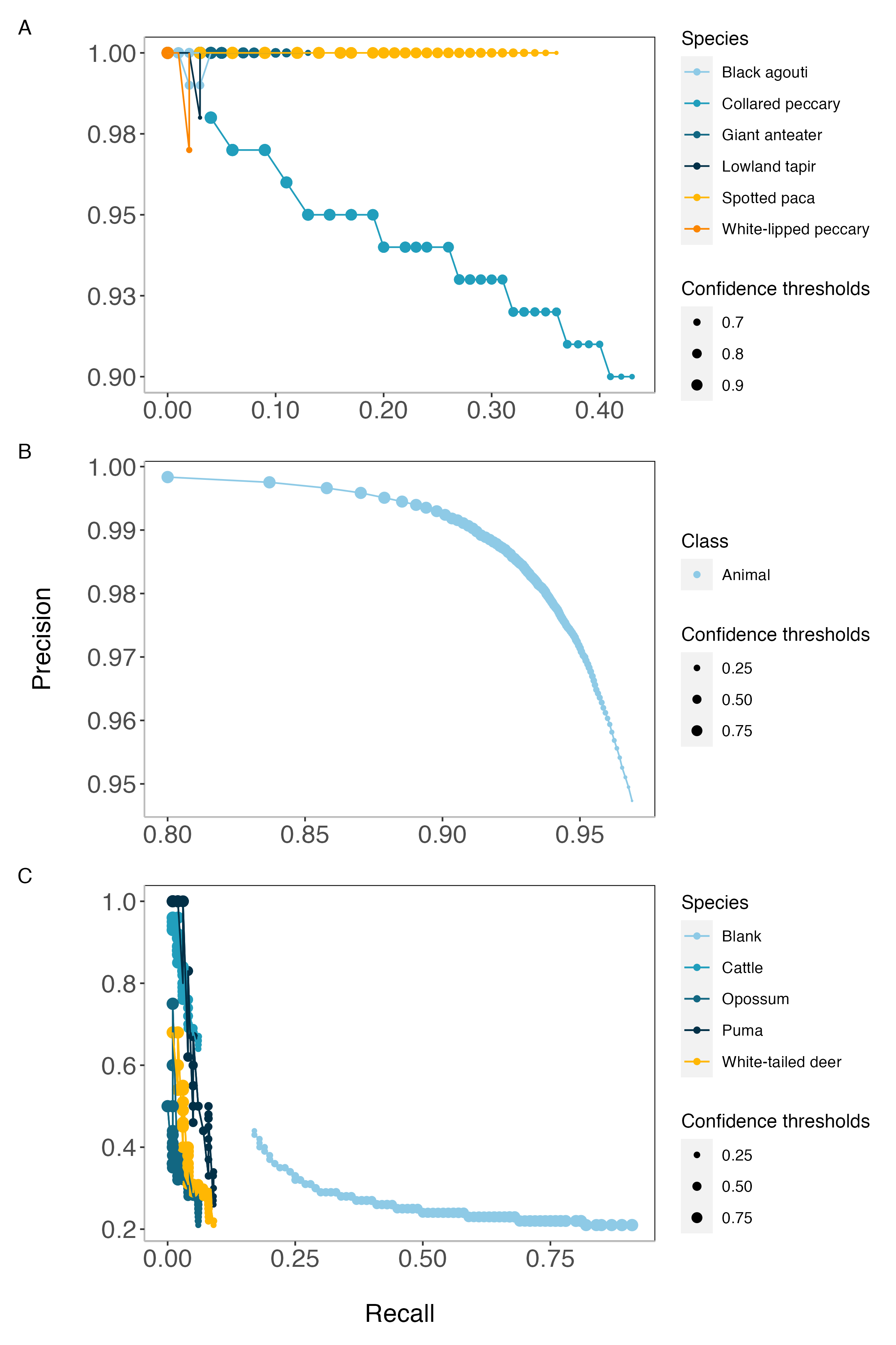 翻译:相机陷阱改变了生态学家如何研究野生动物物种分布、活动模式和特定相互作用的方法。 虽然相机陷阱为监测物种提供了成本-效率高的方法,但数据处理所需的时间可以限制调查效率。 因此,人工智能(AI),特别是深学习(DL),处理相机陷阱数据的潜力得到了相当大的关注。 对这些应用使用DL涉及培训算法,如Concial Neal网络(CNNs),自动检测对象和分类物种。为了克服与培训CNN有关的技术挑战,一些研究界最近开发了平台,将DL纳入易于使用的界面。我们审查了四个AI动力平台的关键特征 -- -- Wildliforife Insights(WI)、Megata探测器(MD)、野生图像机械学习(ML),包括数据管理工具和AI特性。我们还在开放源GitBook中提供R代码,以展示用户如何评估模型性能,并将AI输出纳入半自动工作流程。 我们发现,WI和MWIC2的物种分类(MIL)的准确性2(MWI),一般而言,在使用低的分类中,也得出了某种数值, 直等的数值, 的数值是用于高值的, 直等的, 。(在高值的, 直等的, 直译值中, 直值是用来进行。) 的,, 直译到高值。(我们做了的直到高值, 。) 。(我们的直译到高值, 。) 。