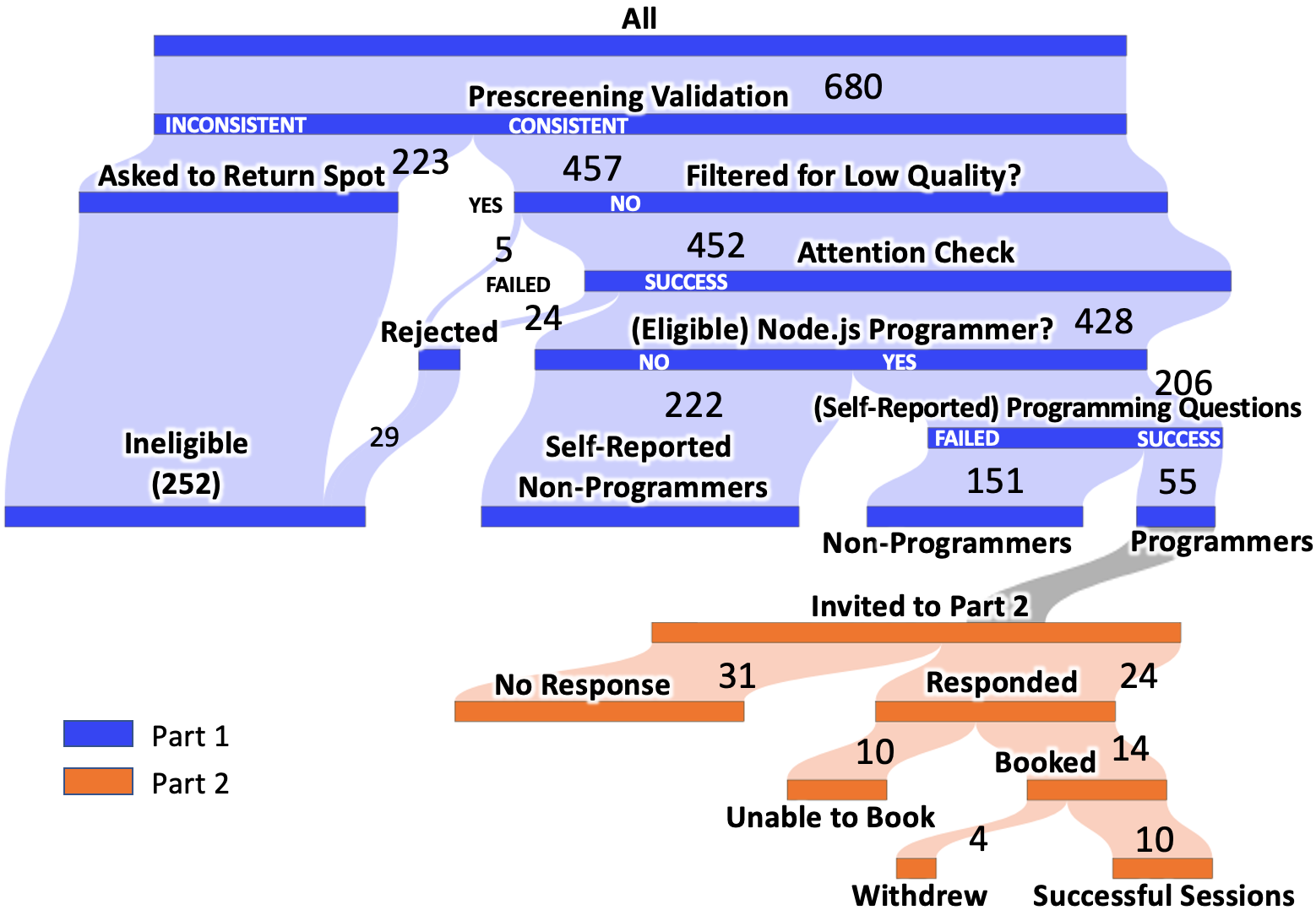 翻译:诸如Prolific等在线参与者征聘平台在研究中越来越受欢迎,因为这些平台使研究人员能够方便地接触大批参与者,然而,参与者的质量可能是一个问题;参与者可能提供错误的信息,以便获得更多的研究,从而增加不必要的噪音;本文件详细介绍了我们从Prolicific为用户学习征聘参与者的经验,该学习需要诺德杰斯的编程技能,目的是帮助其他研究人员进行类似的研究;我们探索了一种利用预先筛选验证、关注检查和一系列编程知识问题来征聘程序参与者的方法;我们收到了680份答复,确定55份符合邀请参加我们用户研究的标准;我们最终通过视频电话与10名参与者进行了用户研究;我们完成这份文件,并提出了一系列研究人员建议。