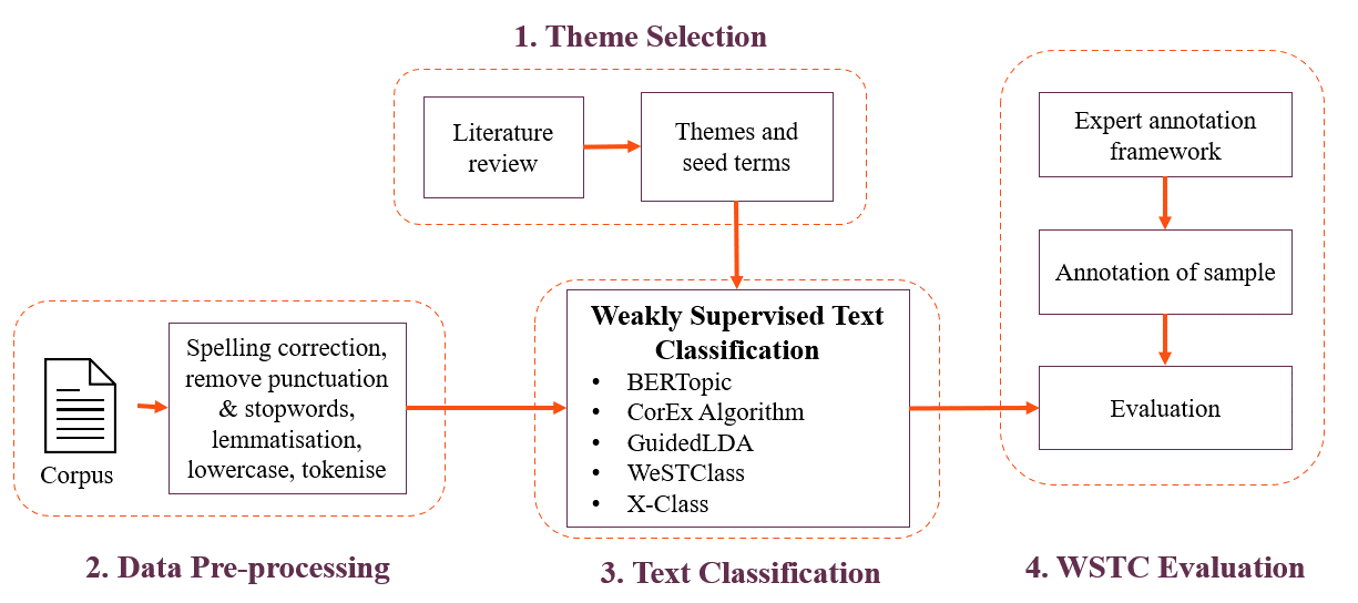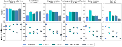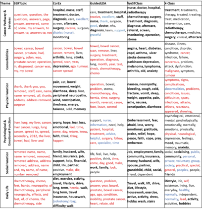 Free text comments (FTC) in patient-reported outcome measures (PROMs) data are typically analysed using manual methods, such as content analysis, which is labour-intensive and time-consuming. Machine learning analysis methods are largely unsupervised, necessitating post-analysis interpretation. Weakly supervised text classification (WSTC) can be a valuable method of analysis to classify domain-specific text data in which there is limited labelled data. In this paper, we apply five WSTC techniques to FTC in PROMs data to identify health-related quality of life (HRQoL) themes reported by colorectal cancer patients. The WSTC methods label all the themes mentioned in the FTC. The results showed moderate performance on the PROMs data, mainly due to the precision of the models, and variation between themes. Evaluation of the classification performance illustrated the potential and limitations of keyword based WSTC to label PROMs FTC when labelled data is limited.