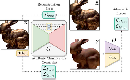 翻译:从单一图像中直接编辑材料外观是一项艰巨的任务,因为光和物质之间的相互作用十分复杂,而且人类感知的矛盾性也十分复杂。 这个问题传统上是通过估算几何或光照等场景的更多因素来解决的,从而解决了反向转化问题,将结果的最终质量降低到这些估计的质量。 我们提出了一个单一的外观编辑框架,使我们能够通过增加或减少描述这种外观的高层次感官特征(如光和物质或金属)来直观地修改一个对象的材料外观。 我们的框架是作为输入一个单一对象(即不控制几何、材料和光照的)的全方位图像的全方位图像,而不需要反面图像。 我们依靠的是变色模型,并与选择性传输股(STU)的细胞设计了一个新的结构,从而能够保存从编辑的输入图像中获取的高频细节。 为了培训我们的框架,我们利用一组合成图像(如物理算法或金属)作为输入的组合图像。 我们的框架将一个单一对象的全方位图像作为输入输入,其中的图像、材料、材料、材料和光质图像的可应用性图像,我们在高端的图像的图像上显示高端的图像的图像。