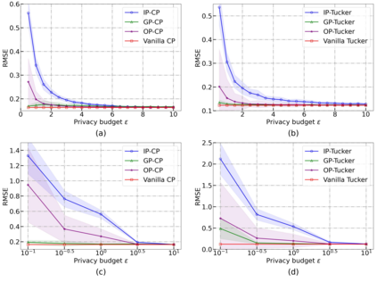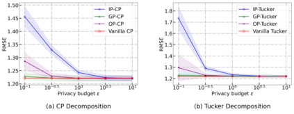 翻译:为了解决这一问题,我们提议了一个坚实和统一的框架,其中包含对两种最广泛使用的高压分解方法适用不同隐私的几种方法:(一) CANDECOMP/PARAFAC~(CP)和(二) Tucker分解方法。对于每一种方法,我们都建立严格的隐私保障,并同时评估隐私的准确性交易。对合成和现实世界数据集的实验表明,我们的提案在确保强力保护隐私的同时,实现了高精度完成。